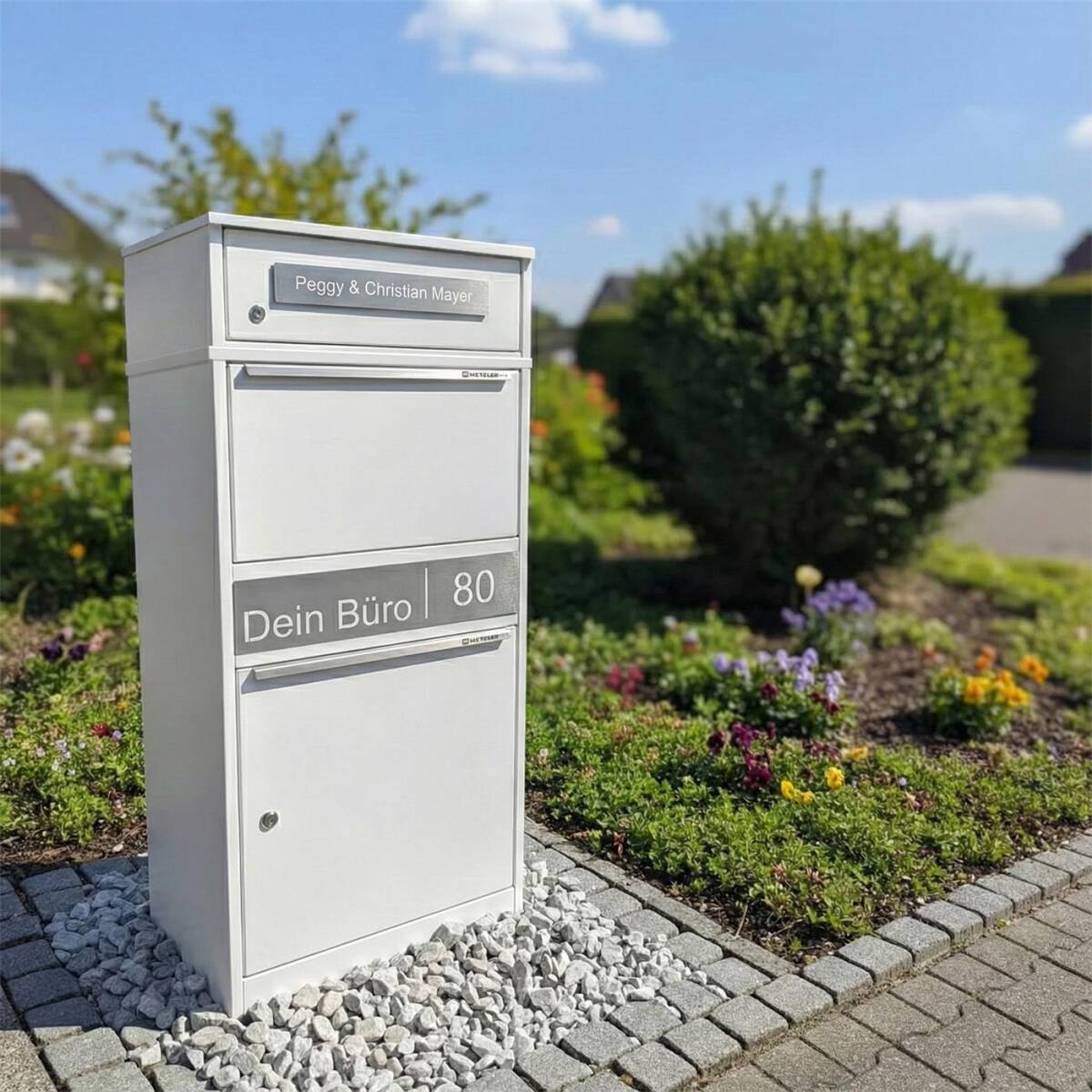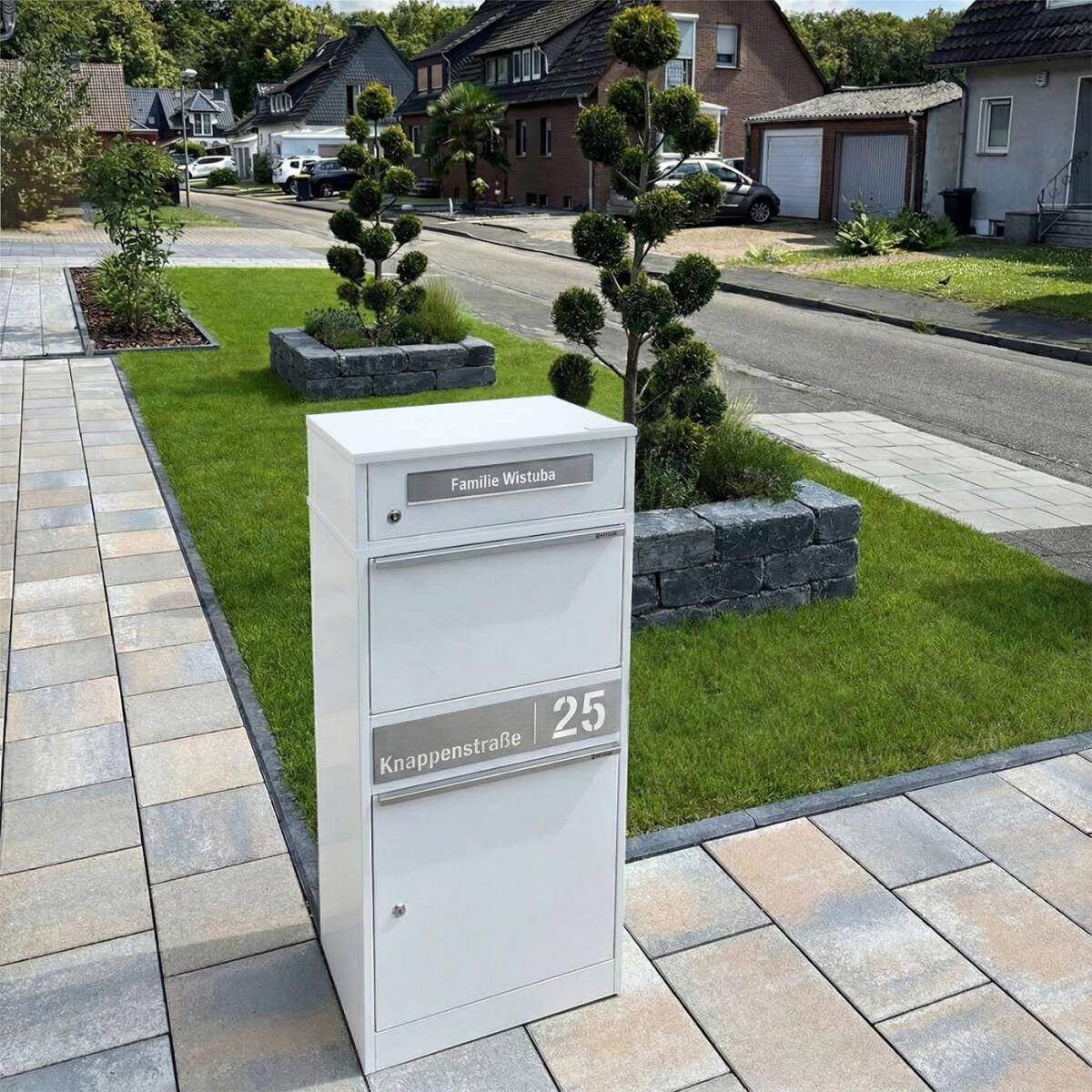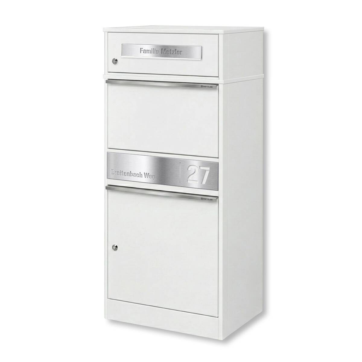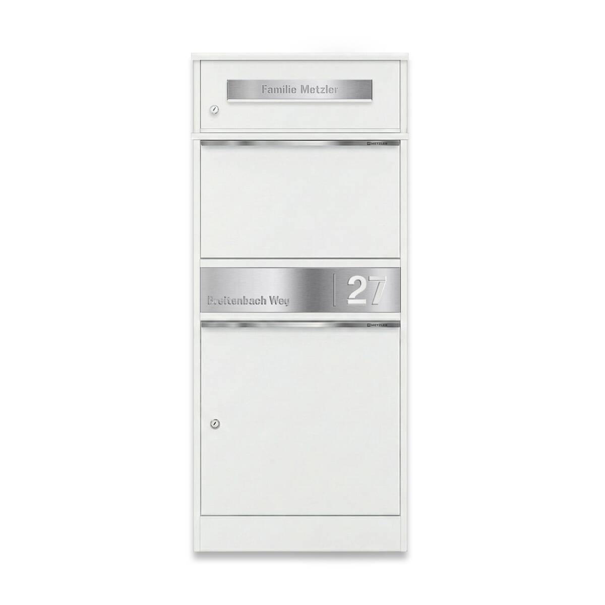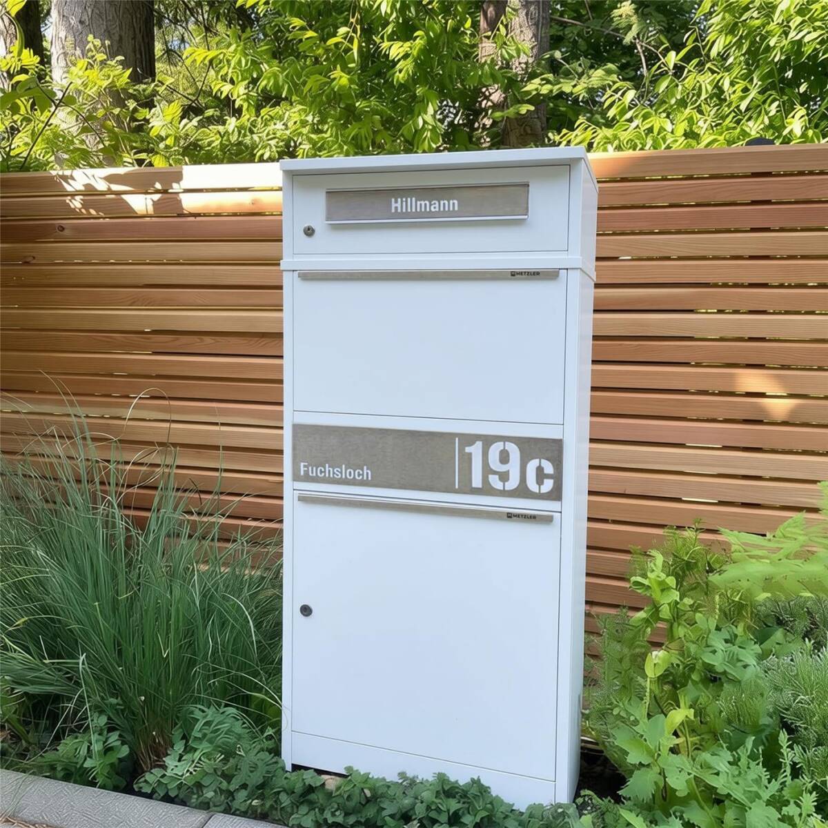 Metzler Briefkasten und Paketbox rostfrei und massiv, Modell Bispo 2 mit Personalisierung