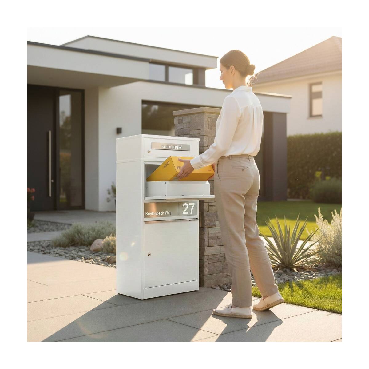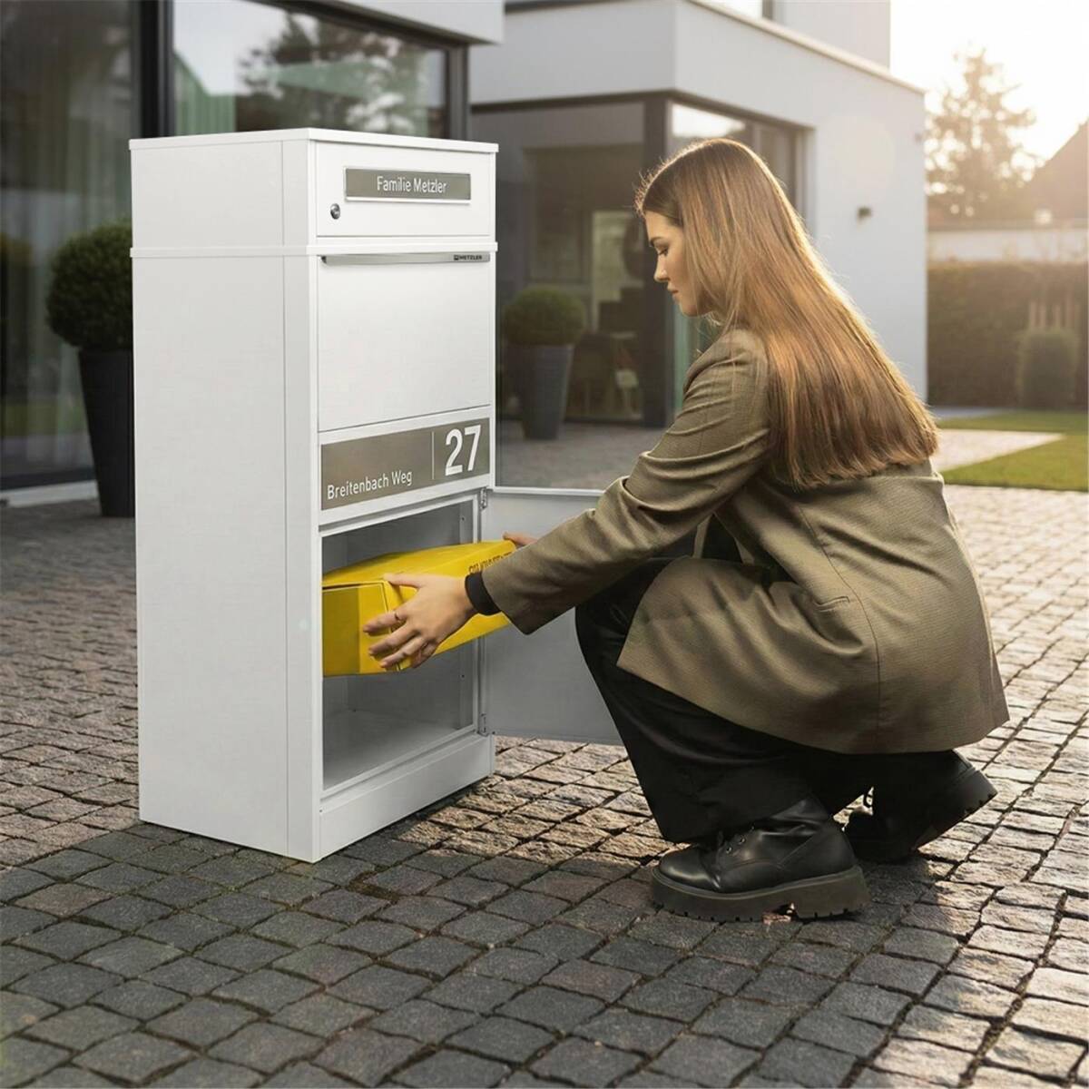 Der Metzler Briefkasten und Paketbox ist die perfekte Lösung für Ihre Brief- und Paketsendungen. Die Zustellung erfolgt kontaktlos und rund um die Uhr. Durch das große Fassungsvermögen passen auch mehrere Pakete auf einmal in die Box – dadurch gehören lästige Fahrten zur nächsten Packstation der Vergangenheit an.Â