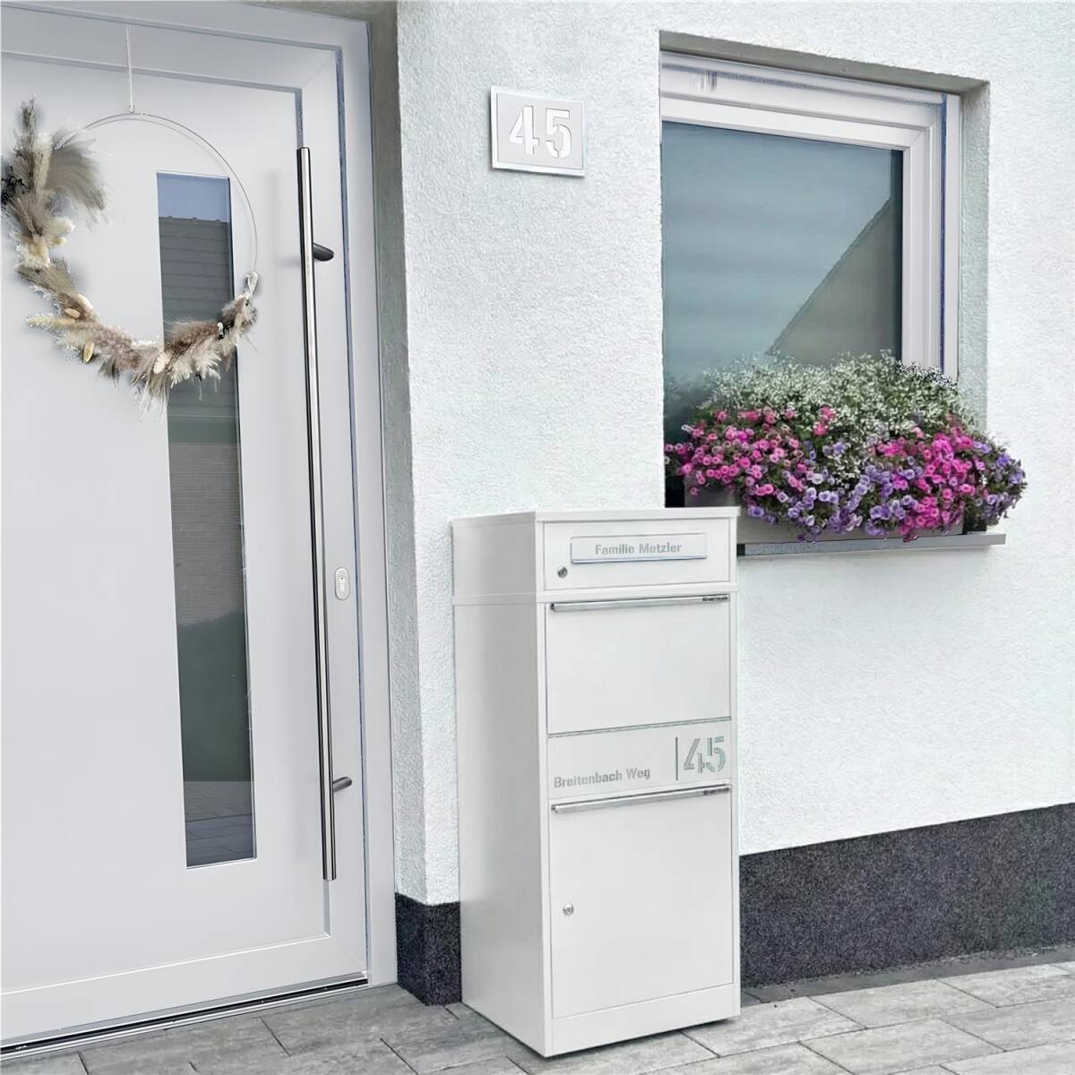 Der abschließbare Paketkasten Taren mit separatem Brieffach bietet eine zuverlässige und komfortable Lösung für den Empfang von Briefen und Paketen. Dank des großzügigen Fassungsvermögens können auch mehrere Pakete gleichzeitig sicher und kontaktlos zugestellt werden – ganz ohne den Weg zur nächsten Packstation.