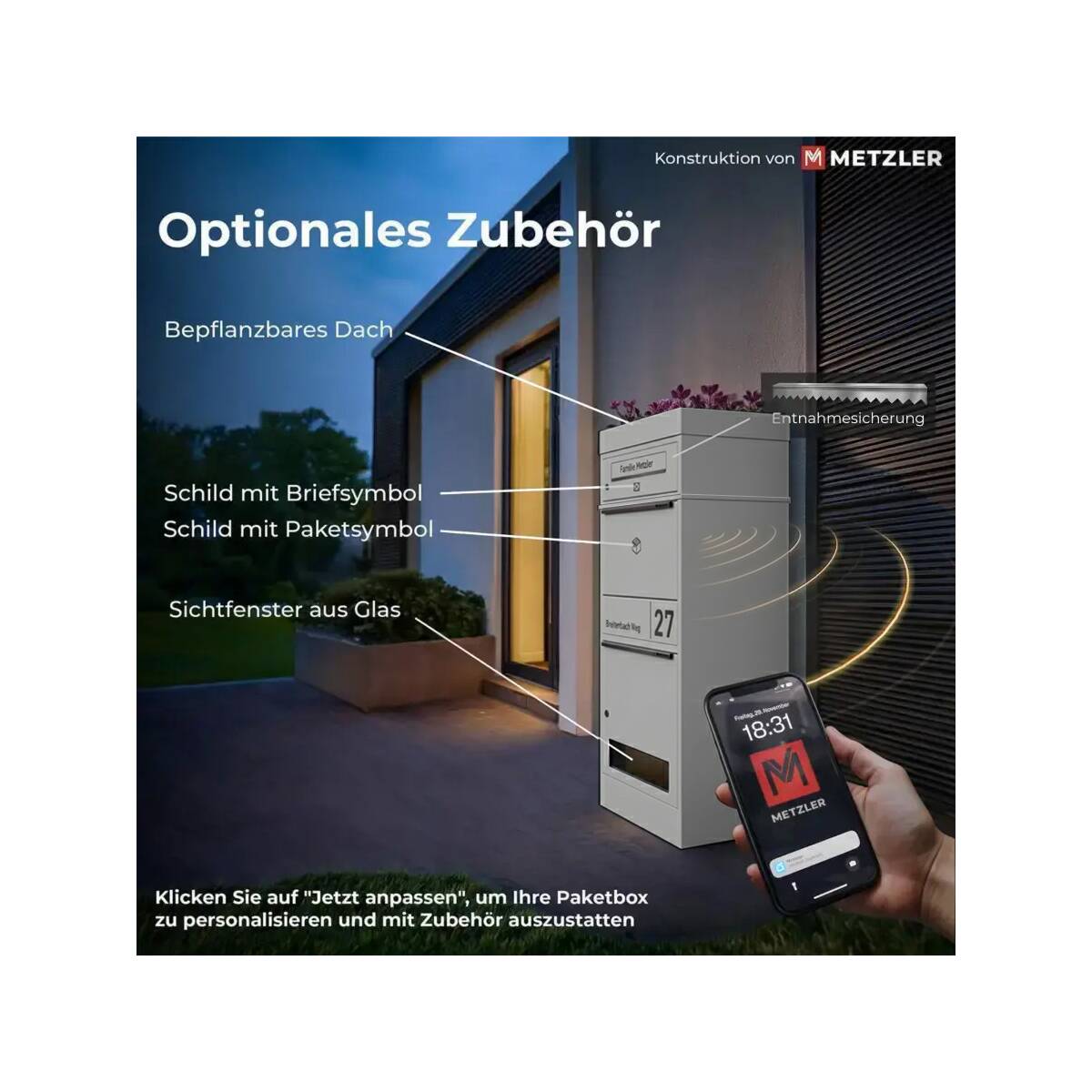Metzler Paketbox Modell Taren mit Briefkasten - personalisiert mit Gravur