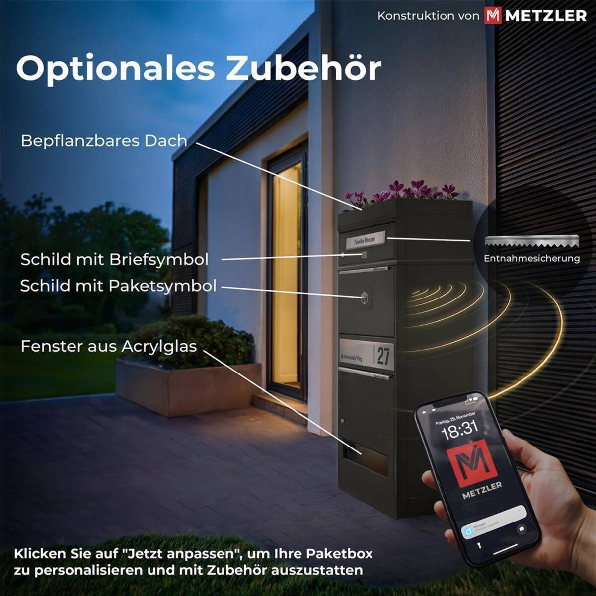 Bringen Sie Ihren Hauseingang mit dieser praktischen Paketbox von Metzler auf den neuesten Stand und empfangen Sie in Zukunft Pakete zuverlässig und sicher.