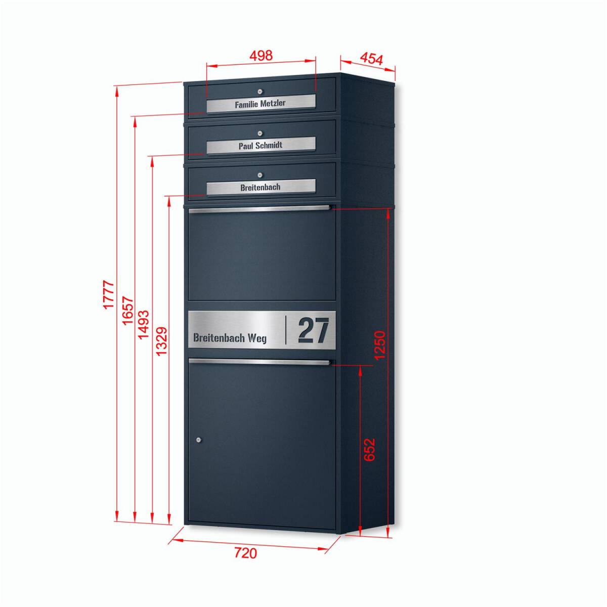 - Anzahl der Briefkastenfächer: 3
