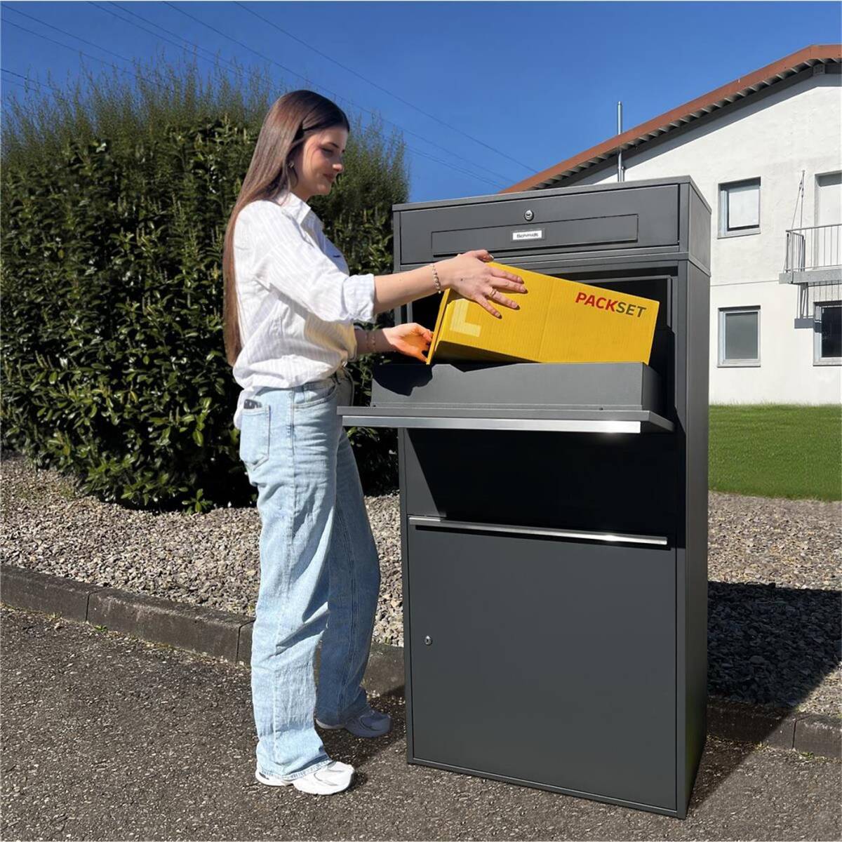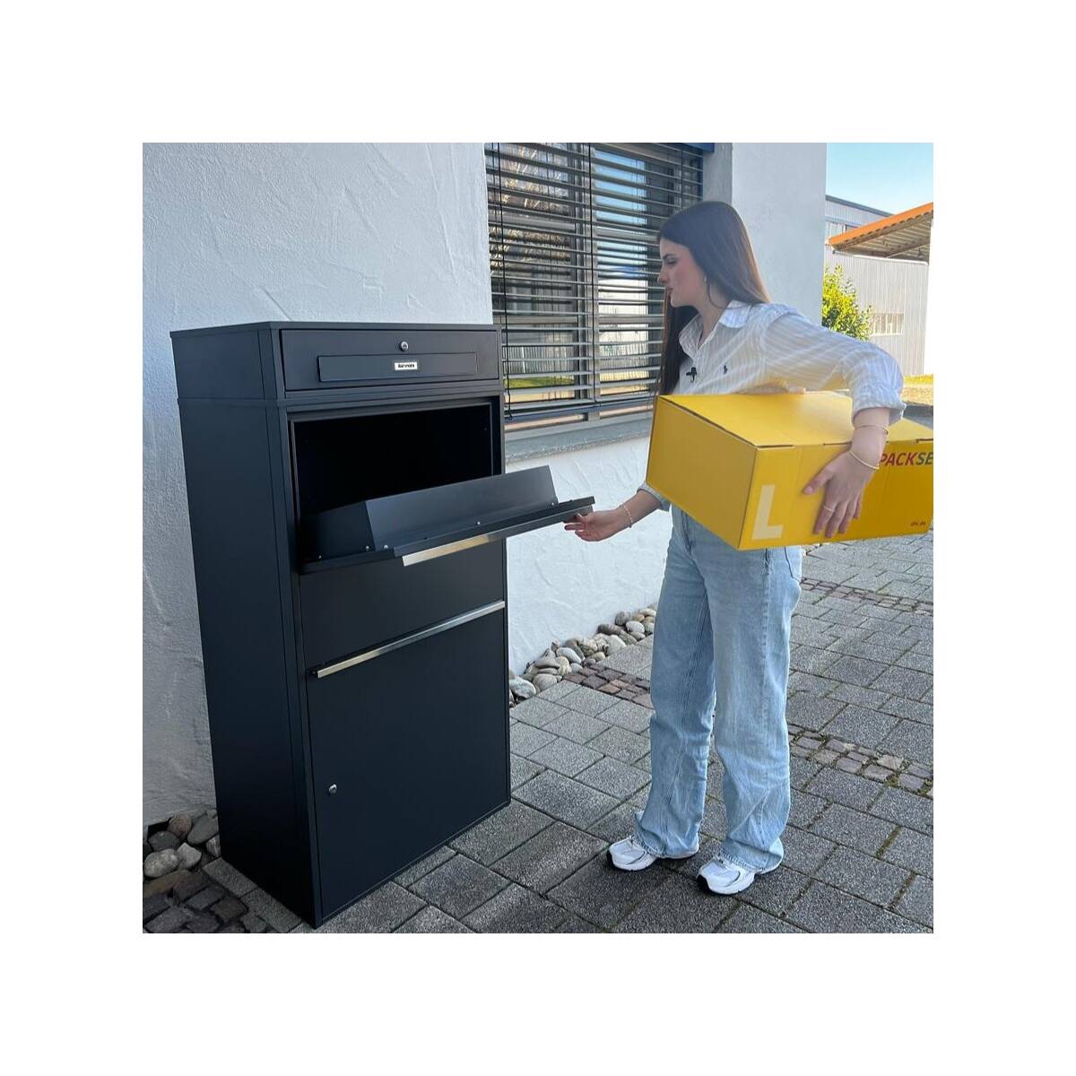 Dank des besonders großen Paketfachs empfangen Sie auch größere Sendungen bis zu 60 x 36 x 22 cm bequem und kontaktlos - rund um die Uhr. Lästige Fahrten zur Packstation oder zum Paketshop gehören damit der Vergangenheit an.