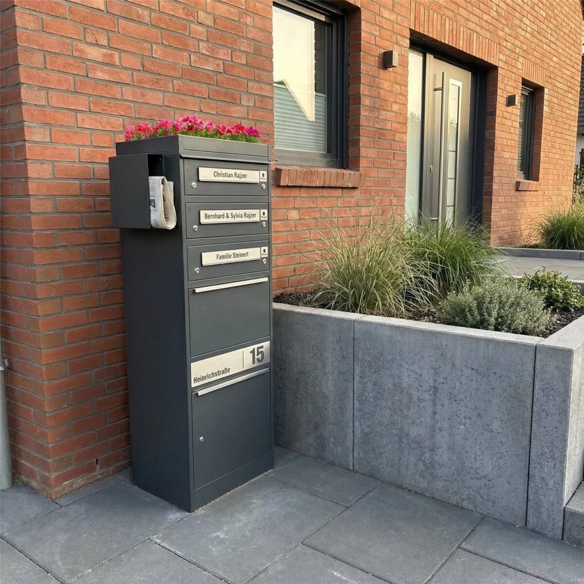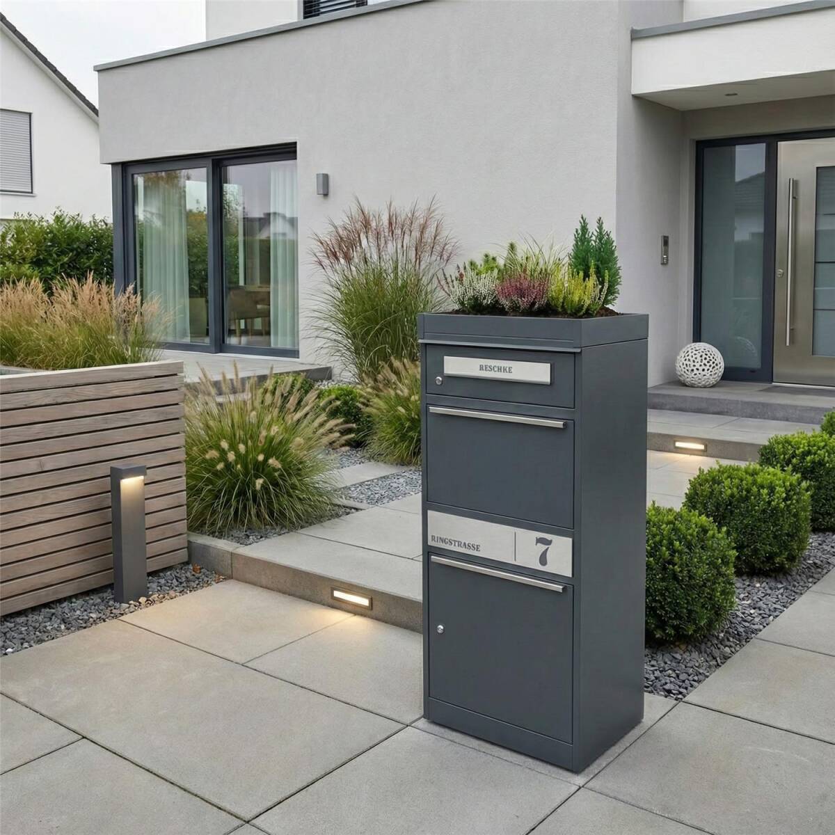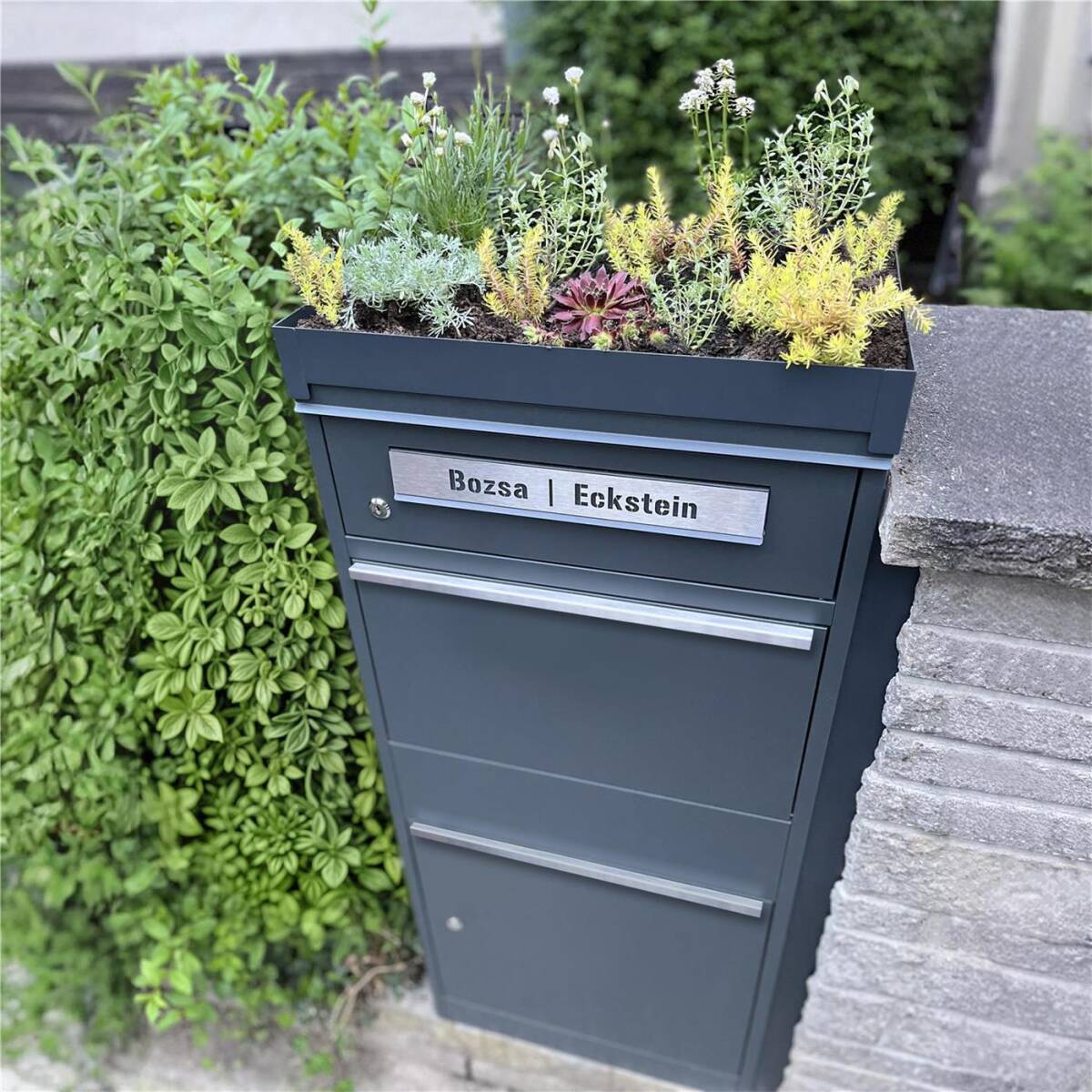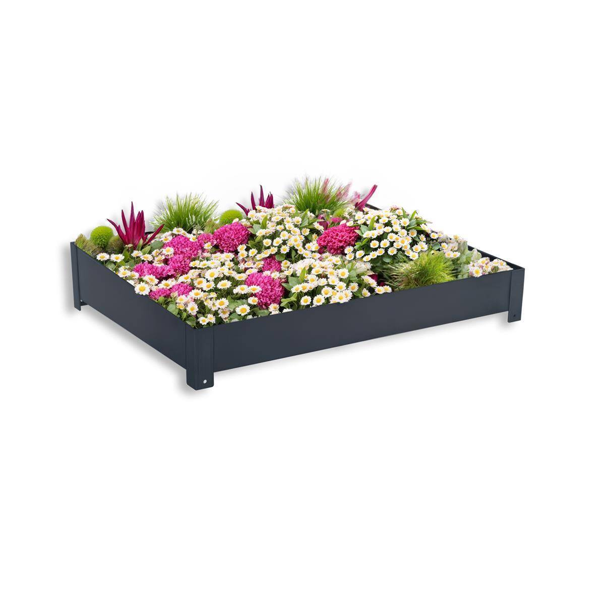 Unser hochwertiges Pflanzdach besteht aus massivem Stahl. Um das Pflanzdach noch witterungsbeständiger zu machen, wird der Stahl nach der Bearbeitung aufwendig pulverbeschichtet. Dadurch ist das Dach bestens vor den Einflüssen von Wind und Wetter geschützt. Das Pflanzdach verfügt über drei Wasserabläufe, um einen effizienten Wasserabfluss zu gewährleisten.