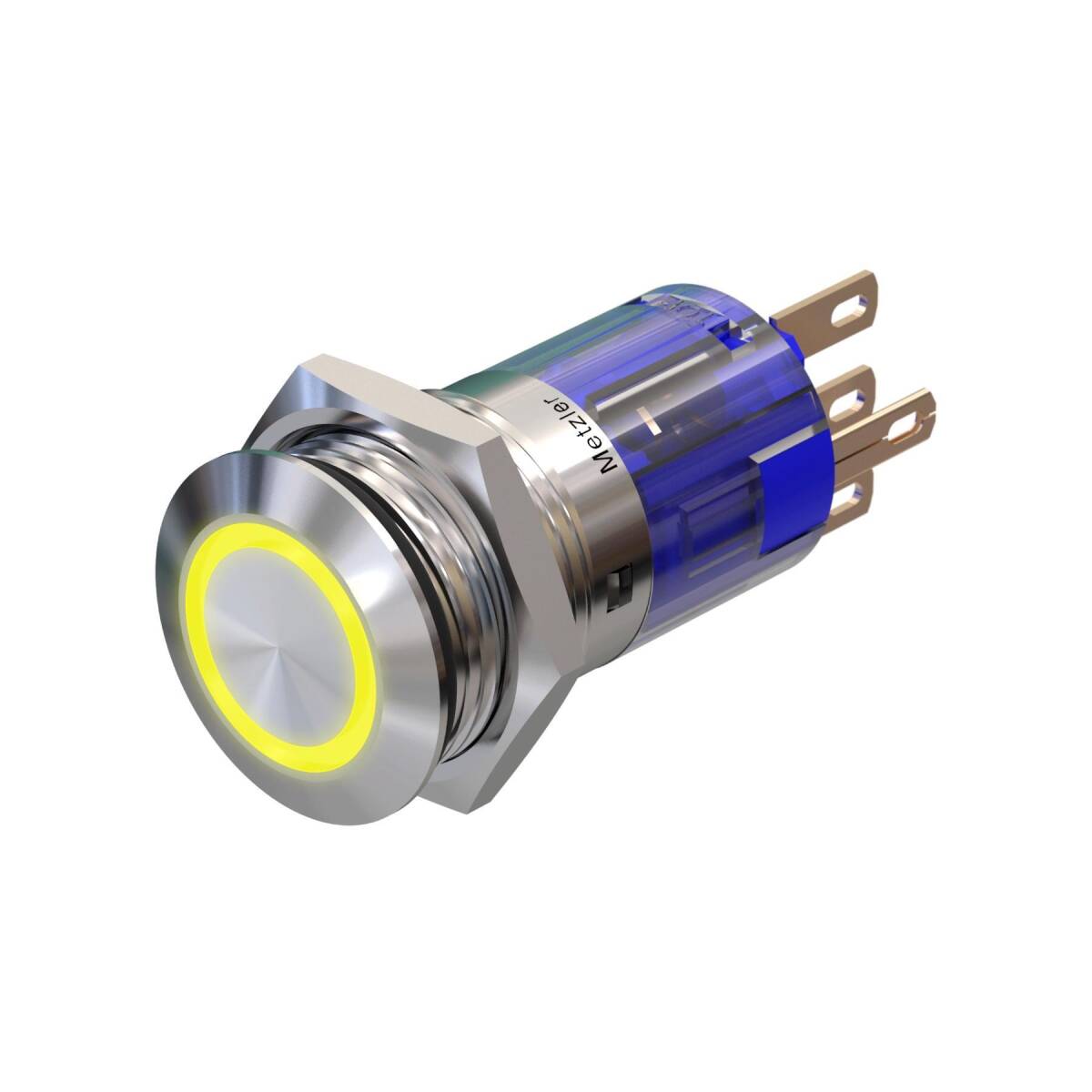 Metzler - Pulsante 16mm - Illuminazione ad anello LED Gialla - IP67 IK10 - Acciaio inox - Piatto - Contatti a saldare