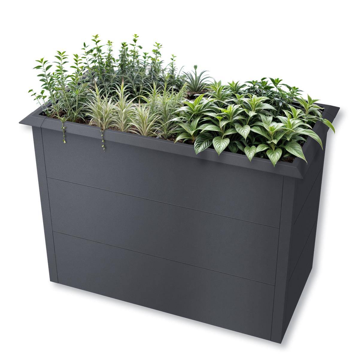 Gefertigt aus robustem, galvanisiertem Stahl und zusätzlich pulverbeschichtet in DB 703 Eisenglimmer, überzeugt der Schneckenschutz durch Wetterbeständigkeit und ein schlichtes, modernes Erscheinungsbild.