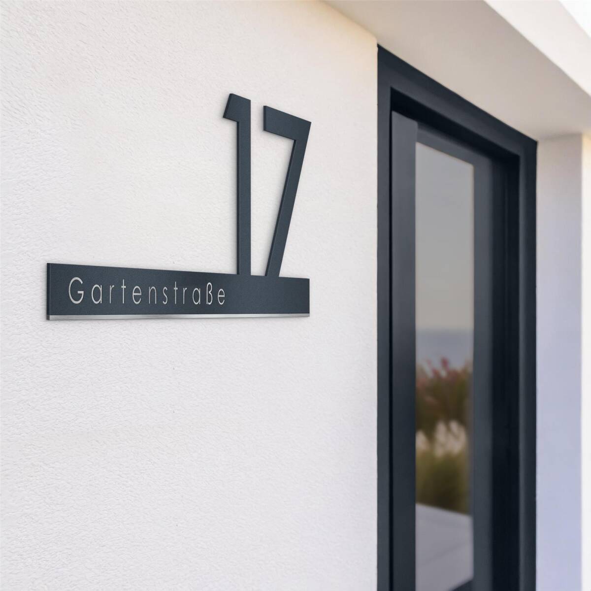 Hochwertiger, rostfreier Schriftzug aus Acrylglas extrem präzise lasergeschnitten. Der Schriftzug mit Straßenname und Hausnummer ist ein echter Blickfang und verschönert jede Fassade.