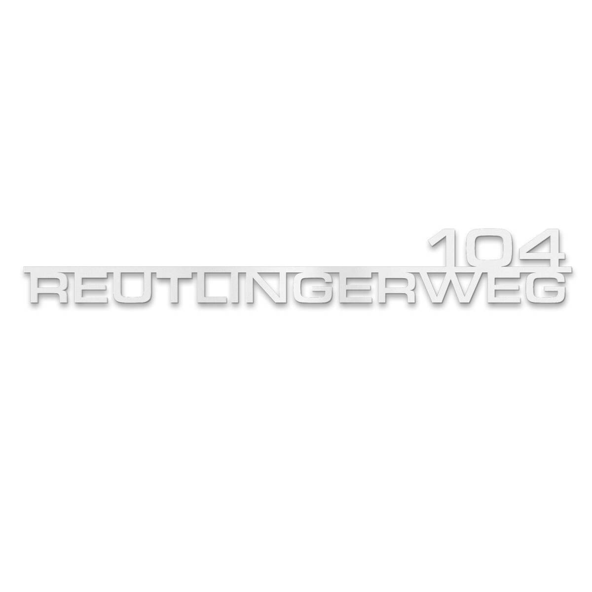 Scritta di alta qualità in acciaio inossidabile, tagliata al laser con estrema precisione. La scritta con nome della via e numero civico è un veroHighlight e abbellisce ogni facciata.