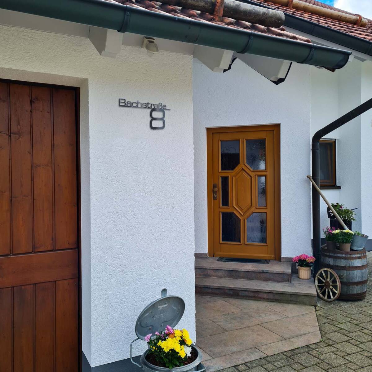 Scritta di alta qualità, inossidabile, in acciaio inox tagliata al laser con estrema precisione. La scritta con nome della via e numero civico è un vero colpo d'occhio e abbellisce ogni facciata.