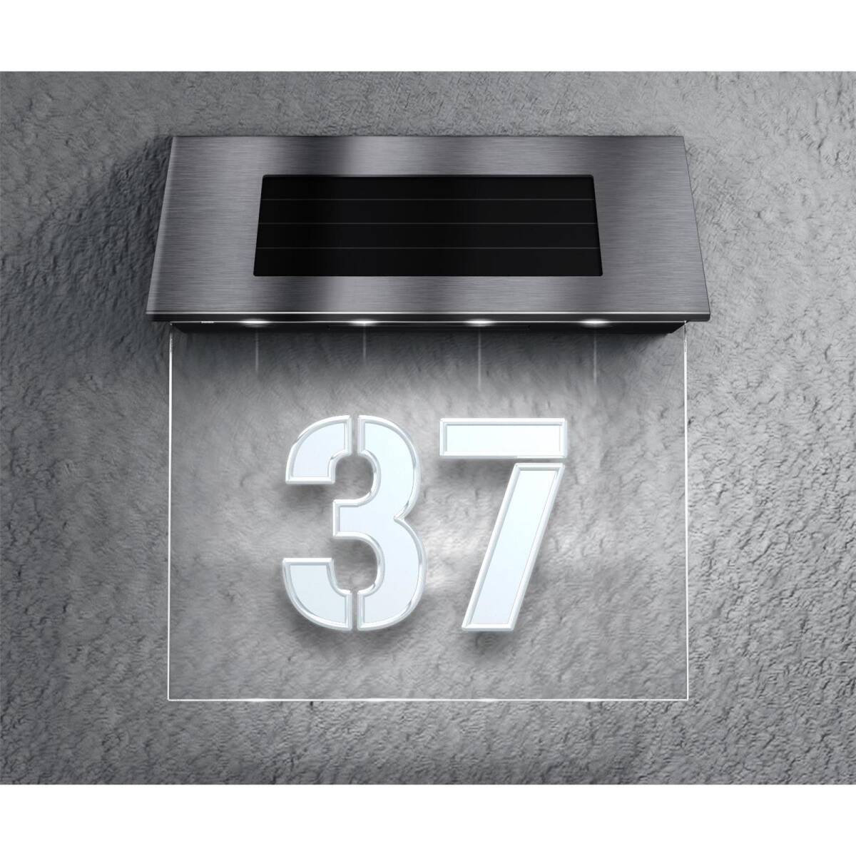 Die hochwertige Solarleuchte lässt Ihre Hausnummer im Dunkeln strahlen. Und das nicht nur kabellos, sondern auch kostenlos, denn durch die Sonnenenergie wird das Hausnummernschild aufgeladen und Ihre Energiekosten gesenkt. Sobald die Dämmerung einsetzt, schaltet sich das Licht automatisch an. Für das Produkt wurden nur Qualitätsmaterialien verwendet: das Gehäuse besteht aus V2A rostfreiem, grob geschliffenem Edelstahl, der einen schönen Kontrast zur kratzfesten Acrylglasplatte mit der CNC-gefrästen Umrissgravur bildet. Beide Materialien sind unempfindlich und extrem witterungsbeständig, so dass eine lange Lebensdauer Ihres Hausnummernschilds garantiert ist.