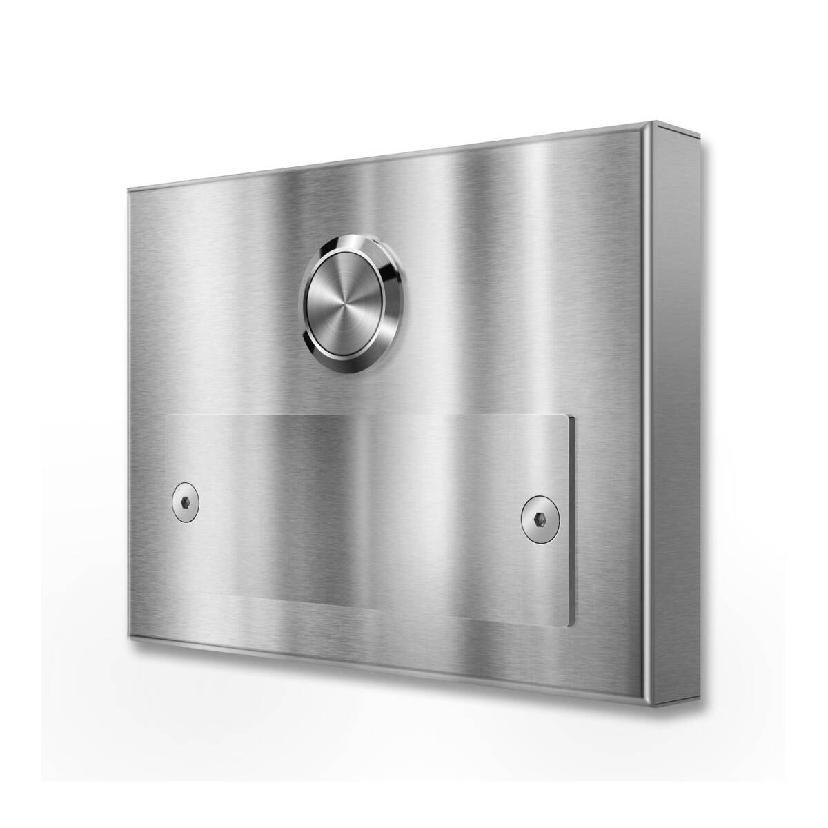 Le corps massif est fabriqué d’acier inoxydable V2A avec surface aiguisée, rendant votre sonnette parfaitement protégée contre le vent et la pluie pour des années.