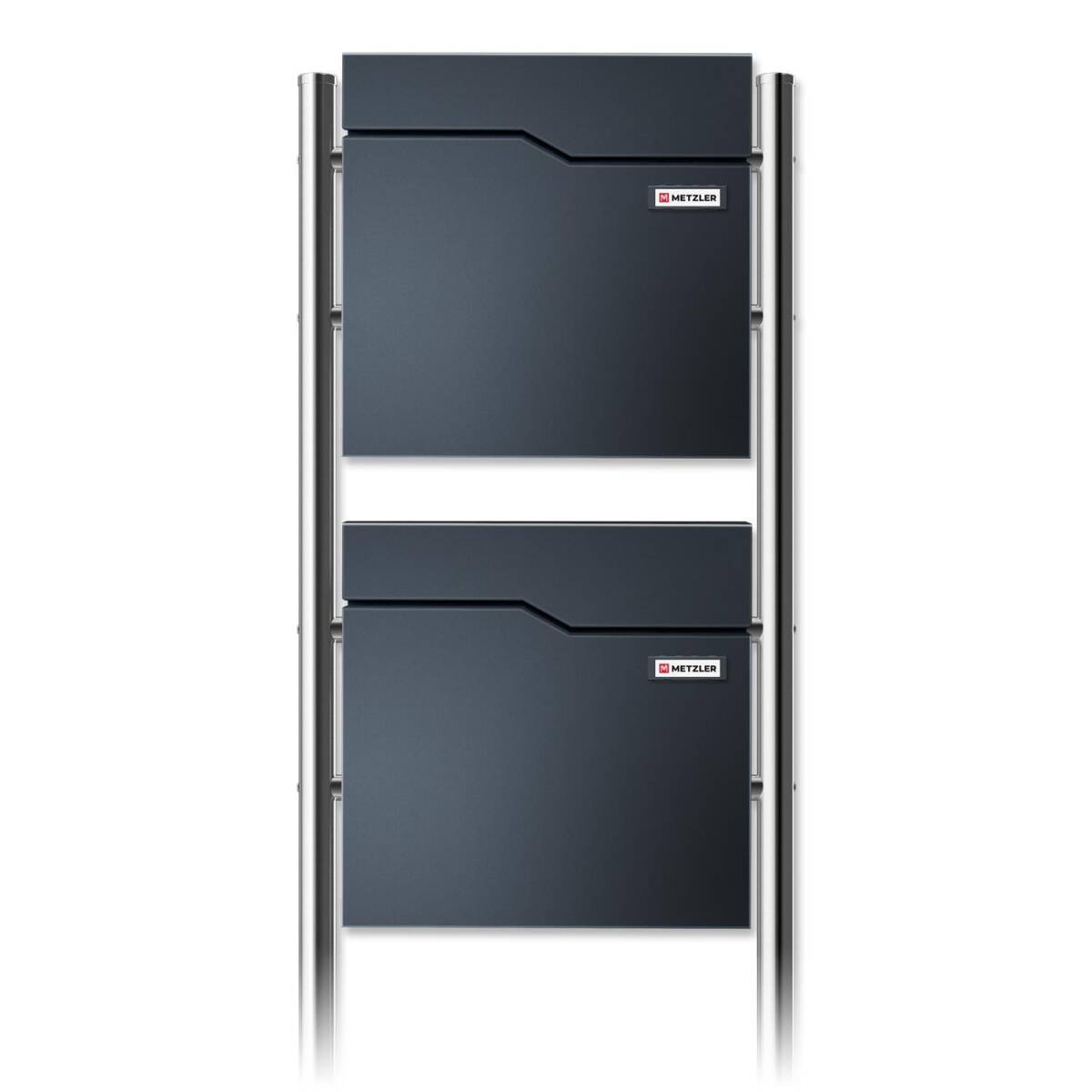 Metzler 2er Standbriefkasten mit vertikaler Briefkastenmontage für Zweifamilienhäuser, Doppelhaushälften und Reihenhäuser