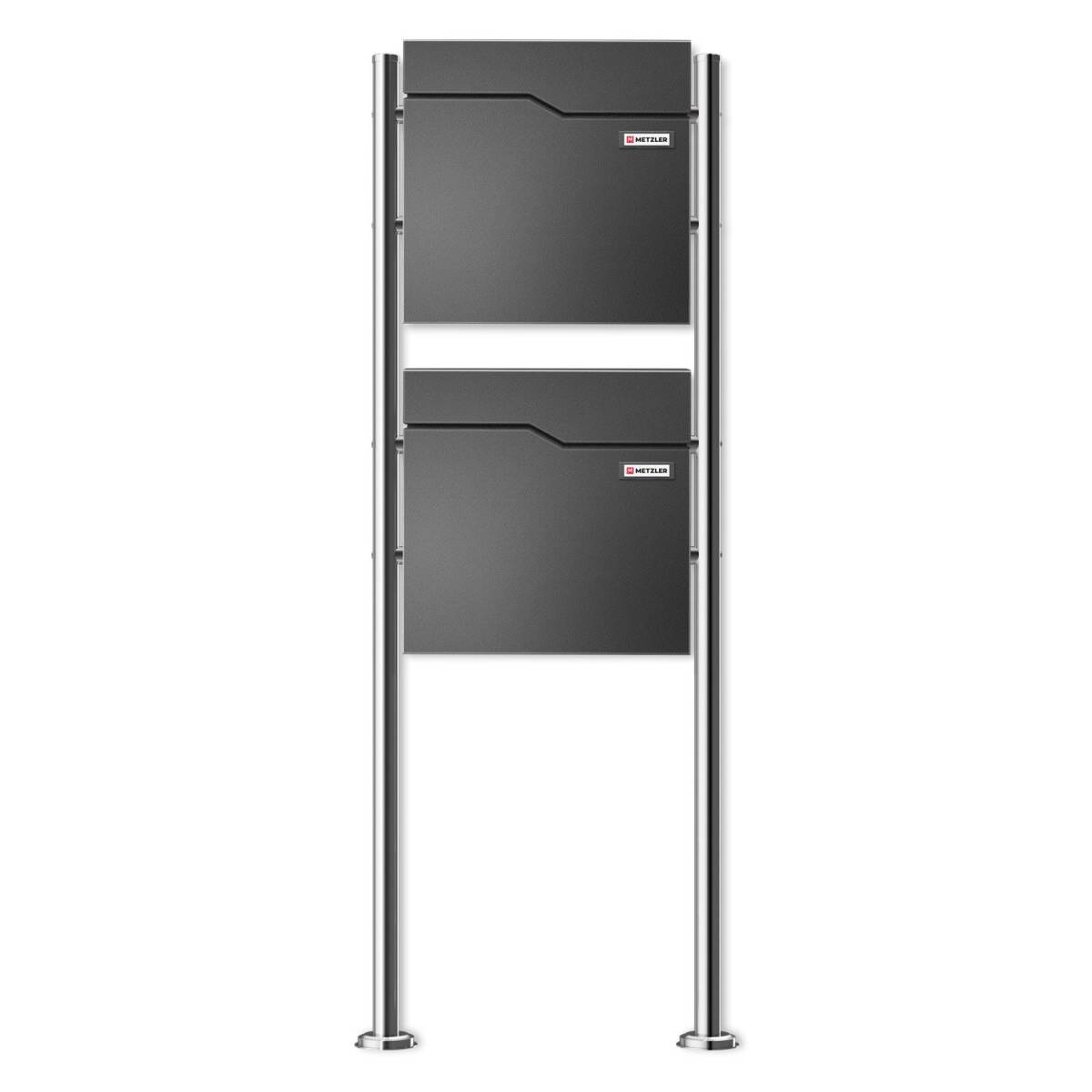 Metzler 2er Standbriefkasten mit vertikaler Briefkastenmontage für Zweifamilienhäuser, Doppelhaushälften und Reihenhäuser