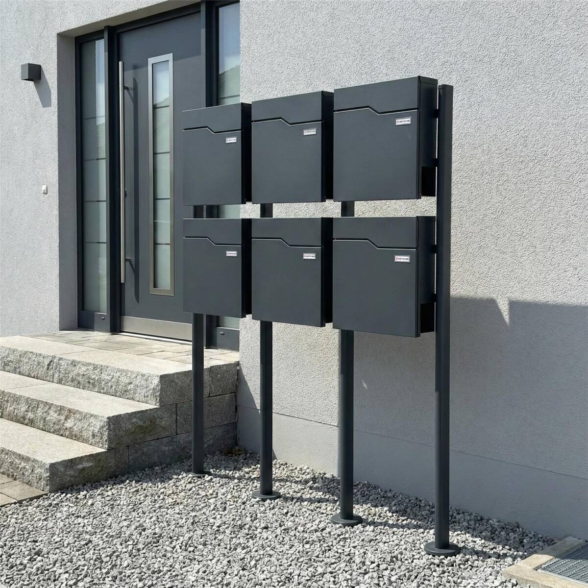 Metzler 6er Standbriefkasten in RAL 7016 Anthrazit - Für Mehrfamilienhäuser