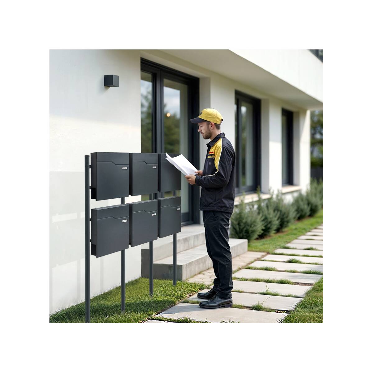 - Stabiler Briefkastenständer aus pulverbeschichtetem Stahl