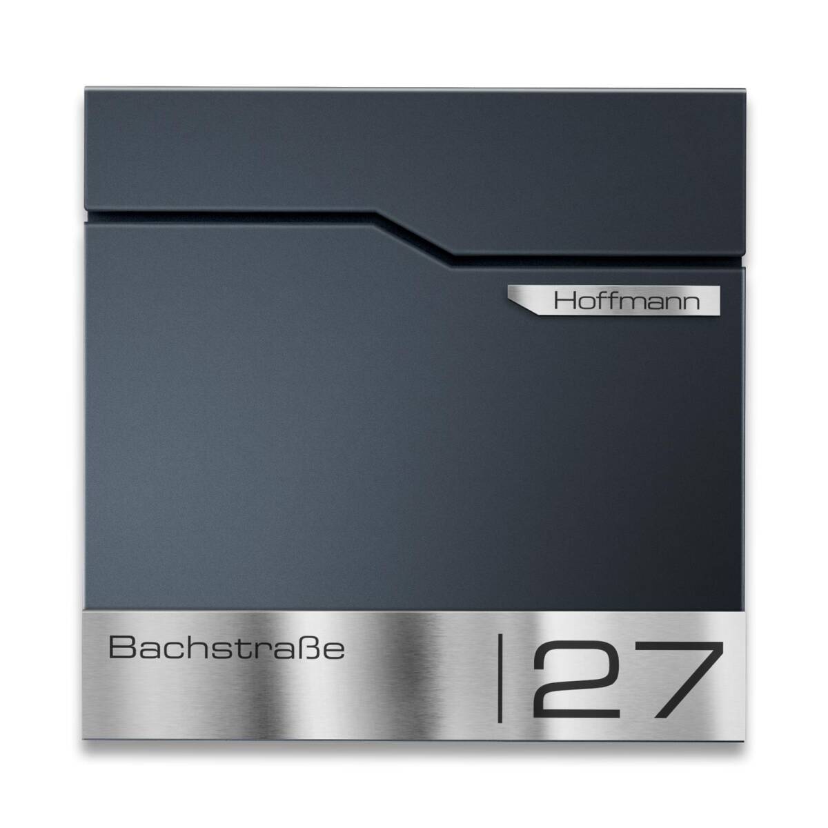 Der Standbriefkasten aus der Serie Hoffmann wurde aus hochwertigem, massivem Stahl hergestellt. Um den Briefkasten noch witterungsbeständiger zu gestalten, wird der Stahl nach dem Laserschnitt von Straße und Hausnummer aufwendig in Anthrazitgrau RAL 7016, Feinstruktur matt, pulverbeschichtet. So können dem Briefkasten weder Wind noch Wetter etwas anhaben.