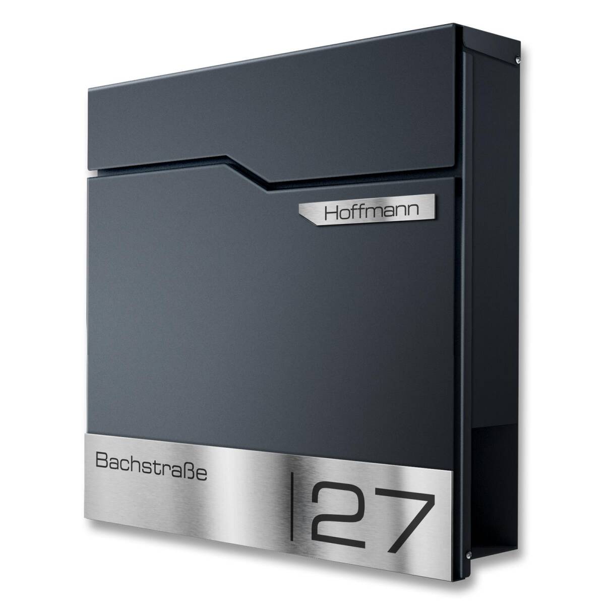 Die Serie Hoffmann steht für schlichte Eleganz gepaart mit großer Funktionalität: Das Zeitungsfach ist vollintegriert und lässt sich von beiden Seiten problemlos befüllen. Die großzügig gestaltete Einwurfklappe mit 335 x 35 mm fasst auch DIN A4 Umschläge, ohne diese zu knicken. Für ein harmonisches Gesamtbild wird das Briefkastenschloss elegant durch die Klappe verdeckt. So wird der Briefkasten zum echten Blickfang in Ihrem Eingangsbereich!