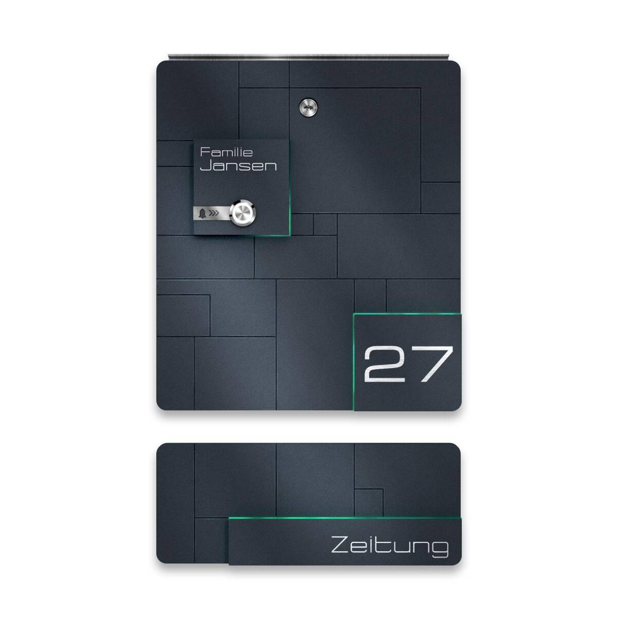 Zusätzlich zum Briefkasten bieten wir auch das zum Design passende Zeitungsfach.