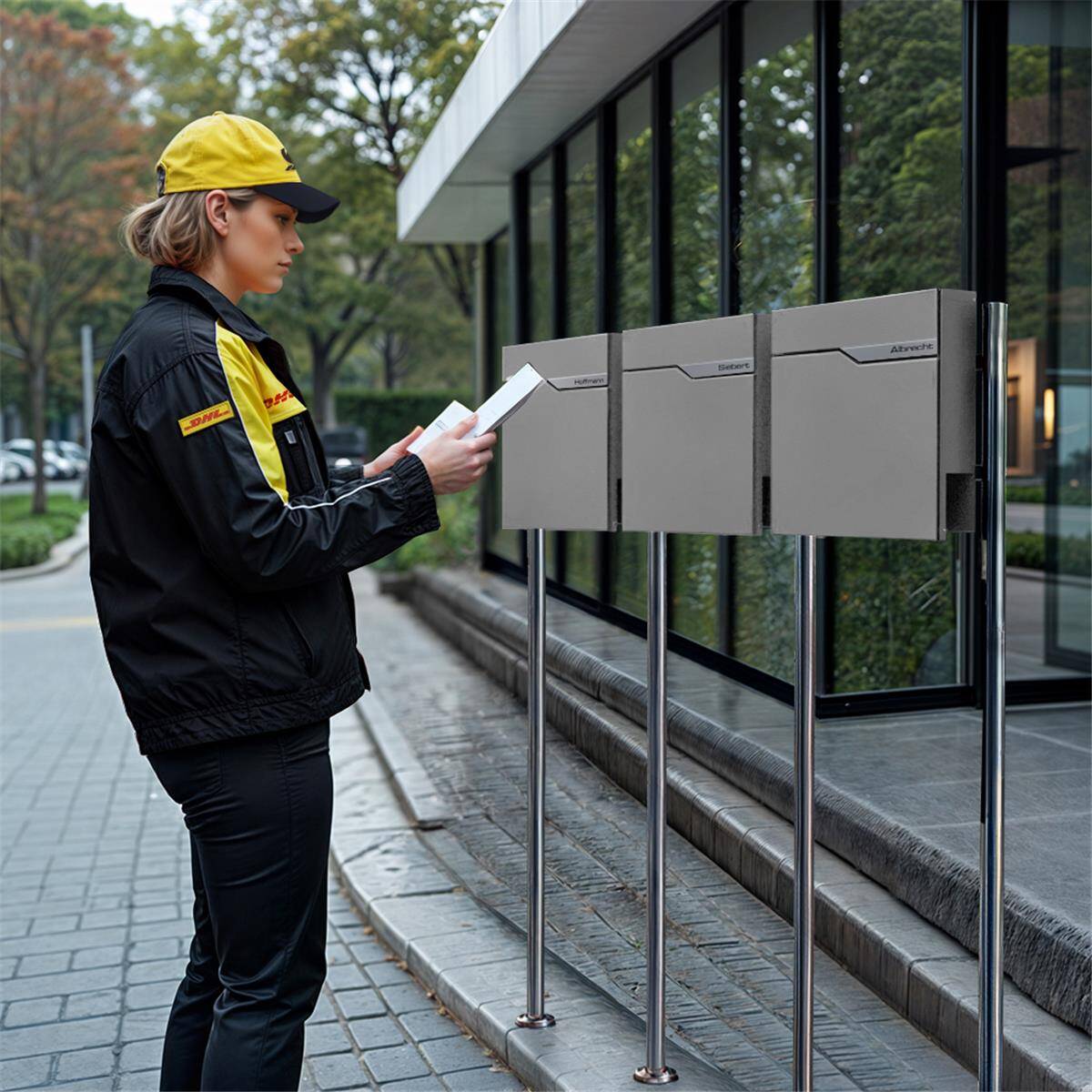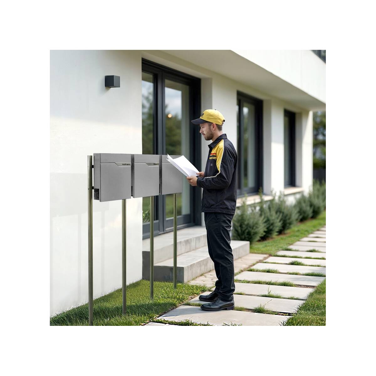 Metzler 3er Standbriefkasten in RAL 9007 Graualuminium - Für Mehrfamilienhäuser