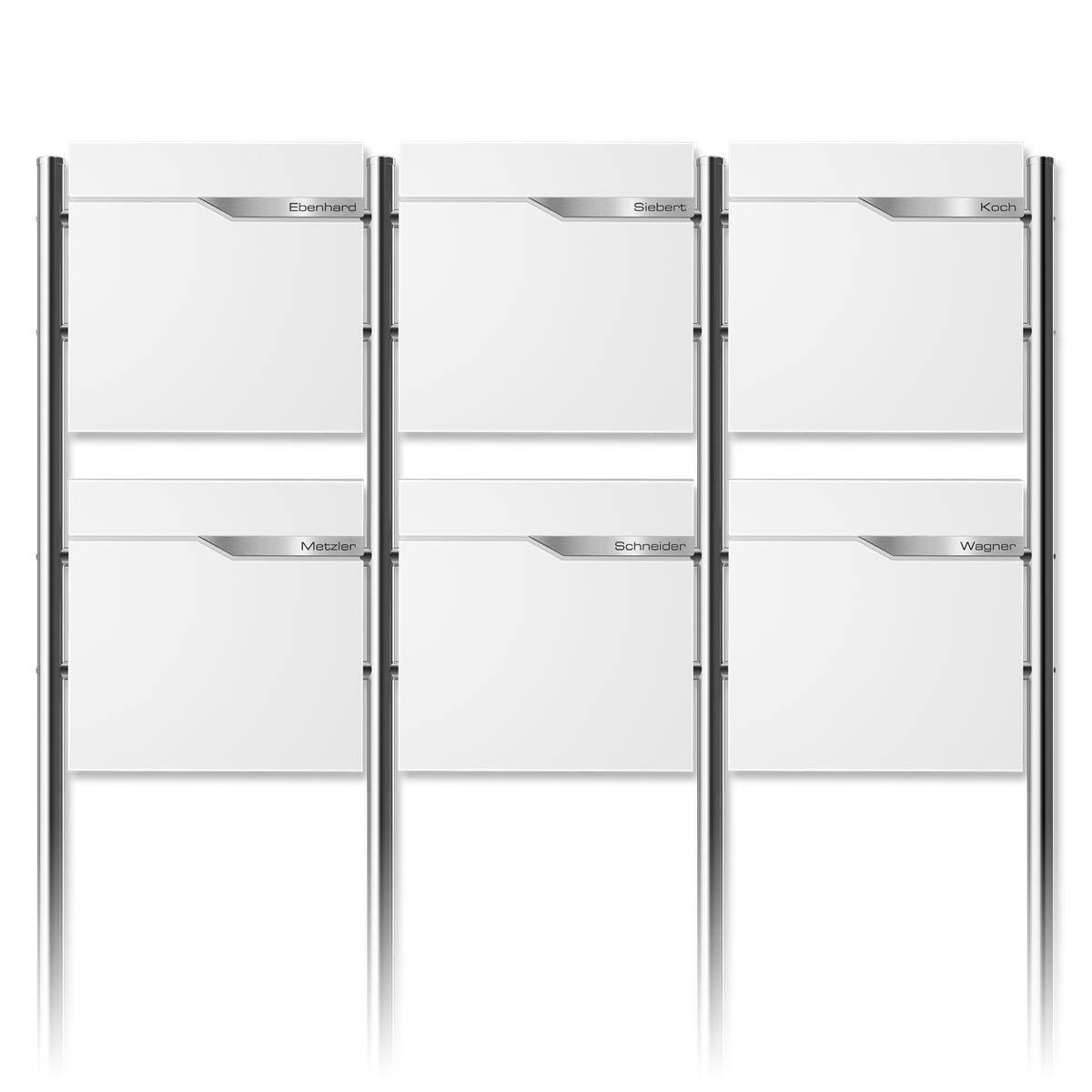 Metzler 6er Standbriefkasten in RAL 9016 Verkehrsweiß - Für Mehrfamilienhäuser