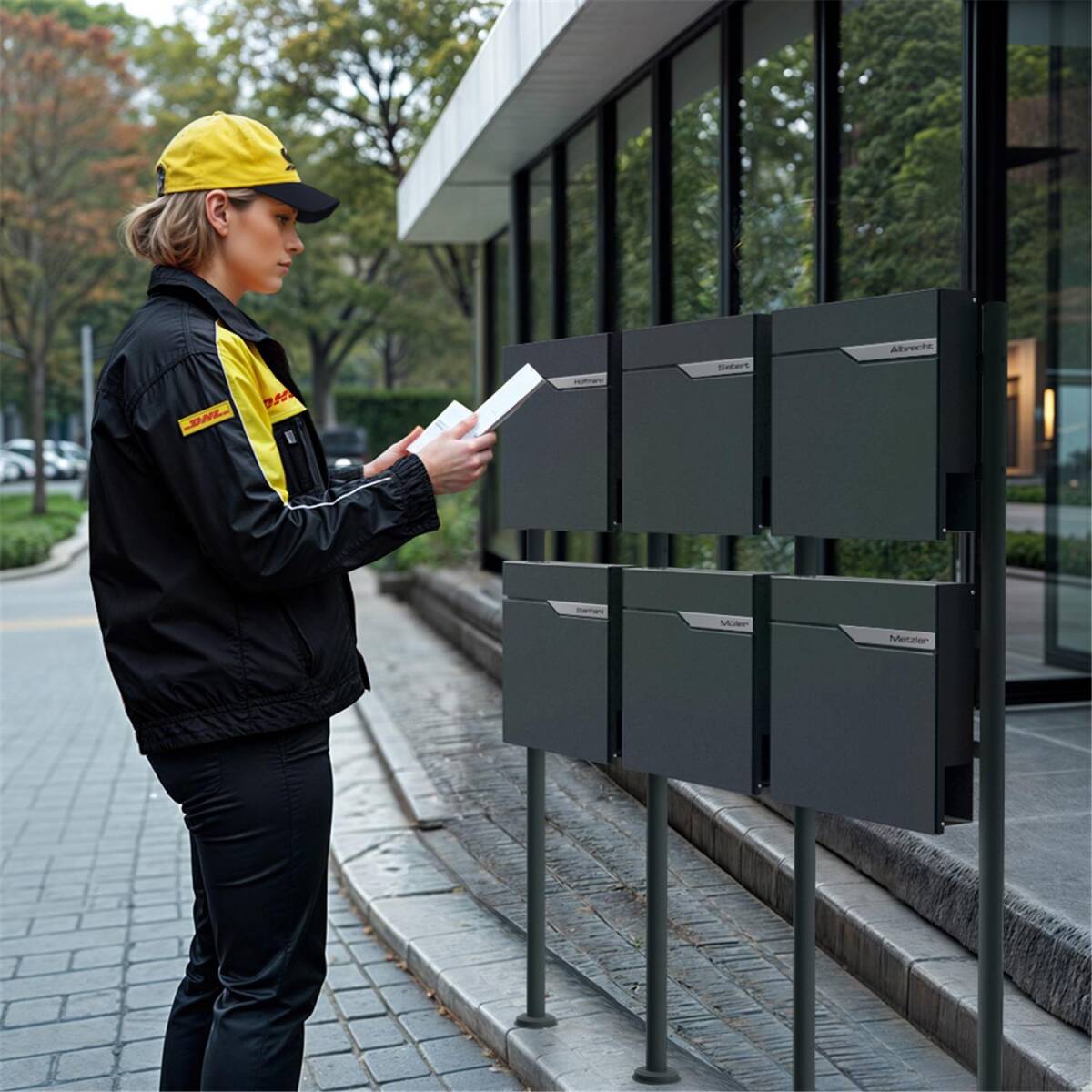 Metzler 6er Standbriefkasten in RAL 7016 Anthrazit - Für Mehrfamilienhäuser