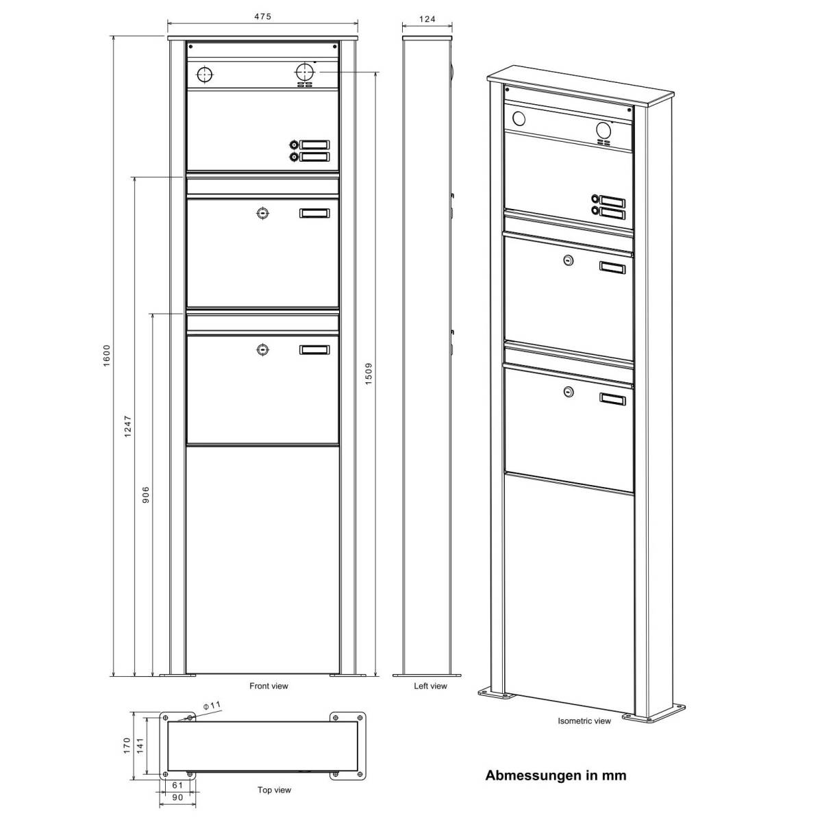 • Inklusive Montagematerial und je zwei Schlüsseln pro Briefkasten (Ersatzschlüssel auf Anfrage erhältlich)