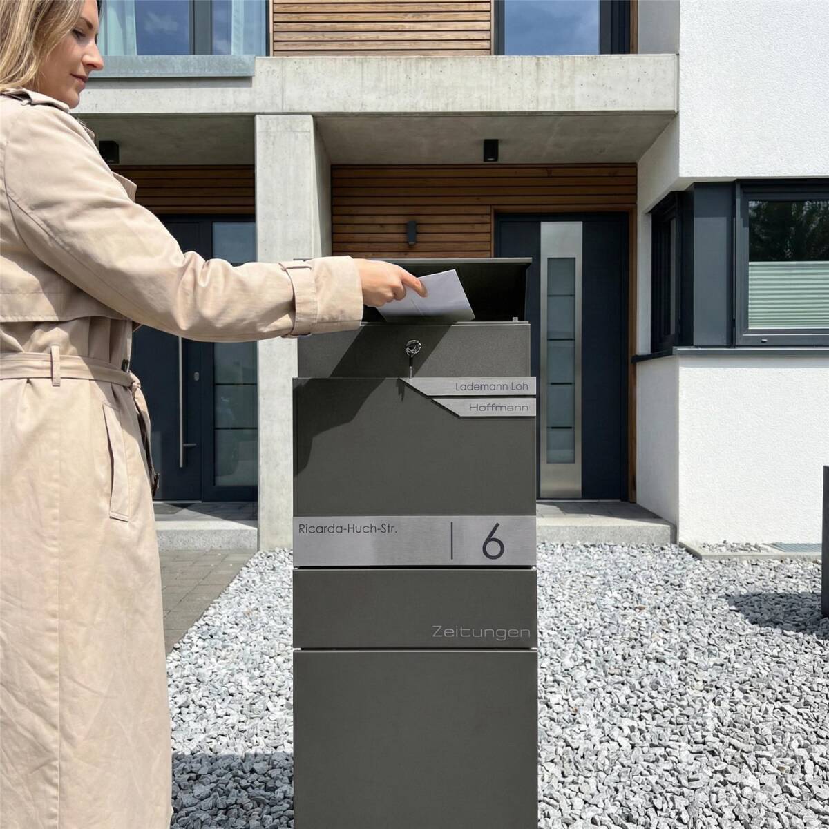 Metzler Standbriefkasten Alves mit Zeitungsfach und zwei Namensschildern