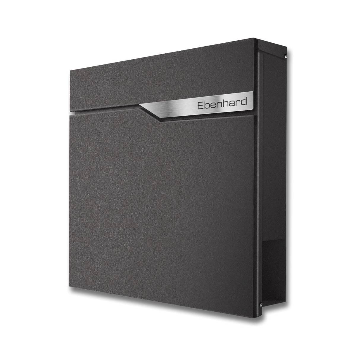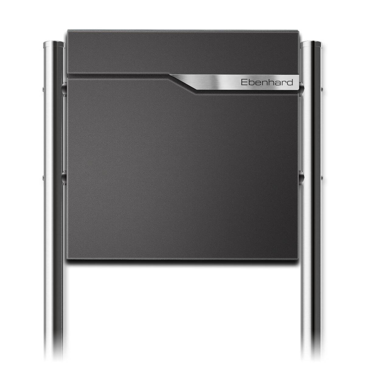 Moderner Standbriefkasten Ebenhard in DB 703 Eisenglimmer mit selbstklebendem Edelstahlschild