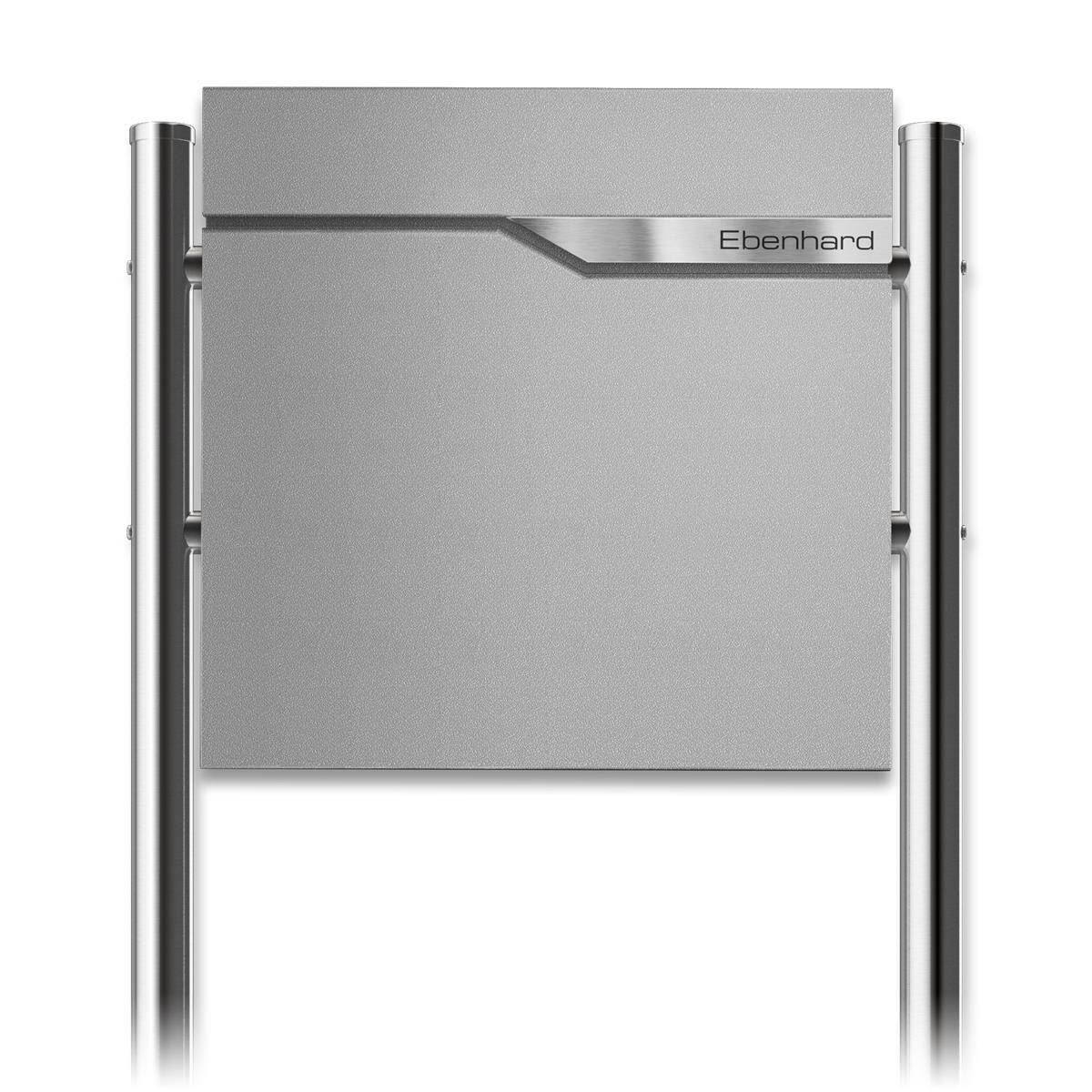 Moderner Standbriefkasten Ebenhard in RAL 9007 Graualuminium mit selbstklebendem Edelstahlschild