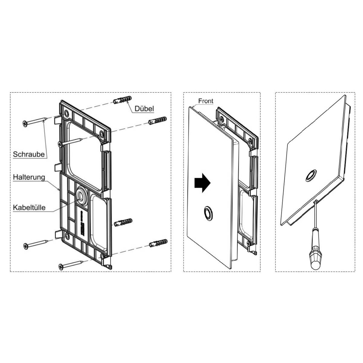 - Der Anschluss erfolgt an herkömmliche Klingeldrähte. Detaillierte Anschlussanleitung ist im Lieferumfang enthalten.