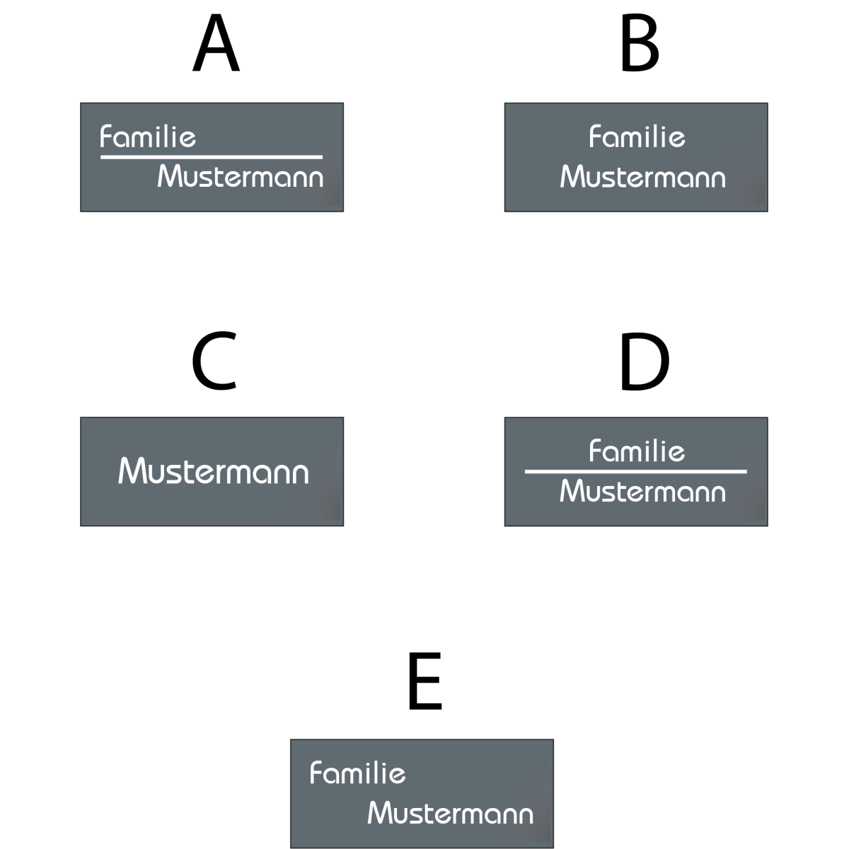 Wie auch die anderen Modelle aus dieser Serie ist die Tafel äußerst massiv und großzügig geschnitten, wodurch genügend Platz für sowohl Ihren Namen als auch Ihre Hausnummer vorhanden ist. Beides wird im Tiefengravurverfahren in den Edelstahl gelasert. Durch das besondere Verfahren ist ein Verblassen der Schrift auch nach vielen Jahren ausgeschlossen, so dass Sie lange Freude an Ihrem Klingelschild haben werden. Als Highlight für die optionale, individuelle Gravur stehen Ihnen 20 verschiedene Schriftarten sowie 5 unterschiedliche Ausrichtungen zur Verfügung. Und im Falle einer Änderung durch beispielsweise Heirat oder Umzug lässt sich die Gravurplatte jederzeit ganz einfach auswechseln.
