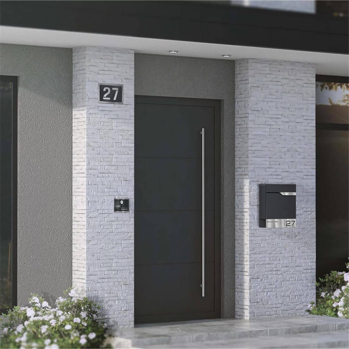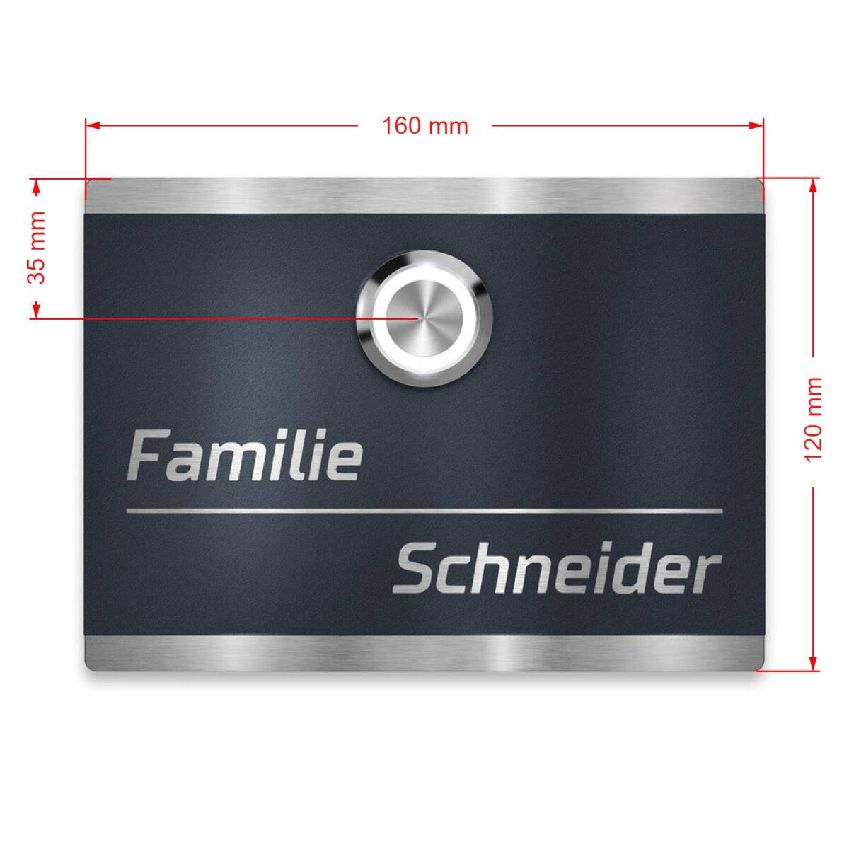 Moderne Türklingel in Anthrazit mit LED-Klingeltaster und Lasergravur