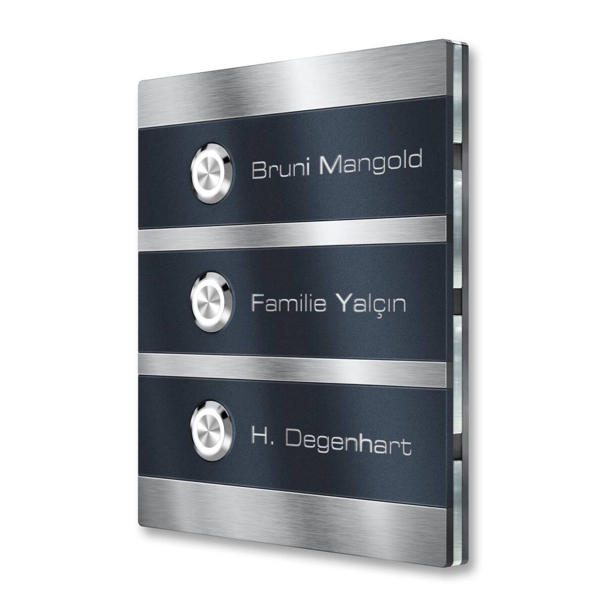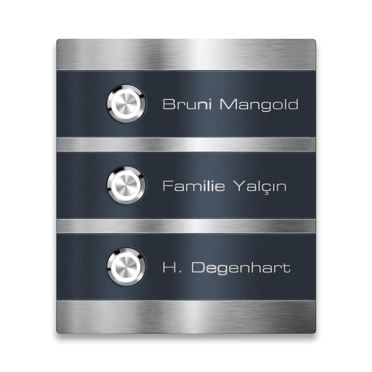 Dieses moderne Klingelschild mit drei Klingeln sorgt mit seinem eleganten Design für Begeisterung im Hauseingang Ihres Mehrfamilienhauses!
