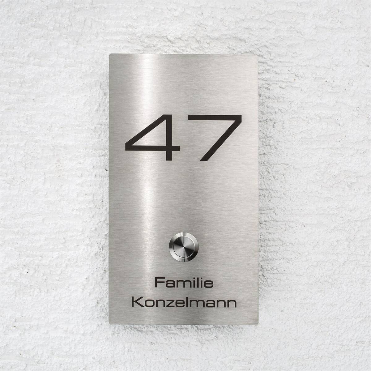 Wie auch die anderen Modelle aus dieser Serie ist die Tafel äußerst massiv und großzügig geschnitten, wodurch genügend Platz für sowohl Ihren Namen als auch Ihre Hausnummer vorhanden ist. Beides wird im Tiefengravurverfahren in den Edelstahl gelasert. Durch das besondere Verfahren ist ein Verblassen der Schrift auch nach vielen Jahren ausgeschlossen, so dass Sie lange Freude an Ihrem Klingelschild haben werden. Als Highlight für die optionale Gravur stehen Ihnen 20 verschiedene Schriftarten sowie 5 unterschiedliche Ausrichtungen zur Verfügung. Und im Falle einer Änderung durch beispielsweise Heirat oder Umzug lässt sich die Gravurplatte jederzeit ganz einfach auswechseln.