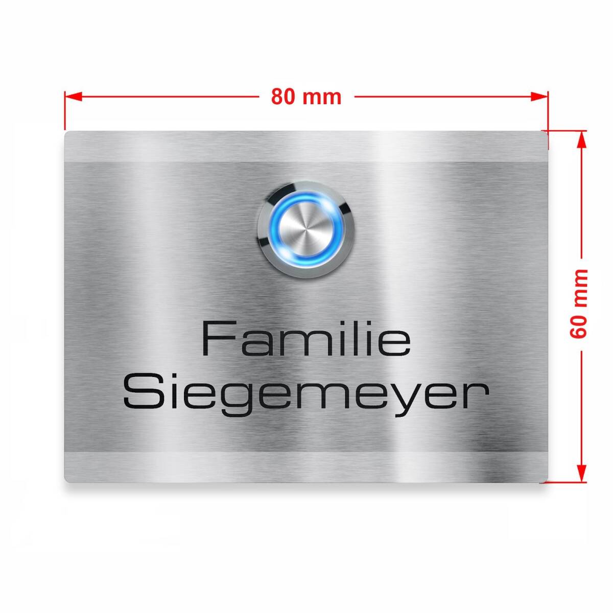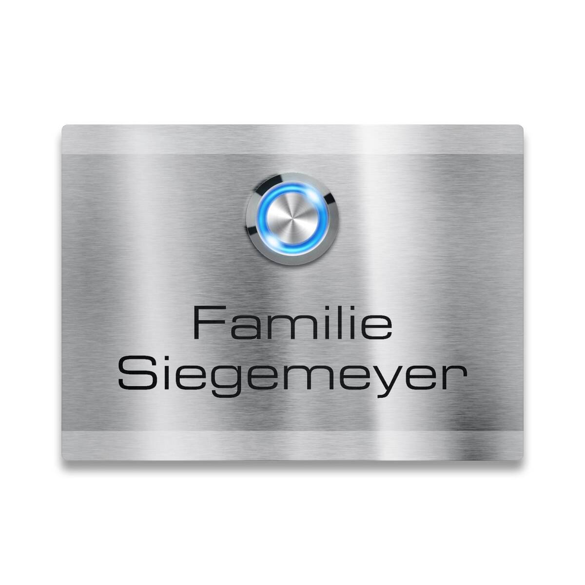 Rechteckige Edelstahl Türklingel mit LED-Klingeltaster und Gravur