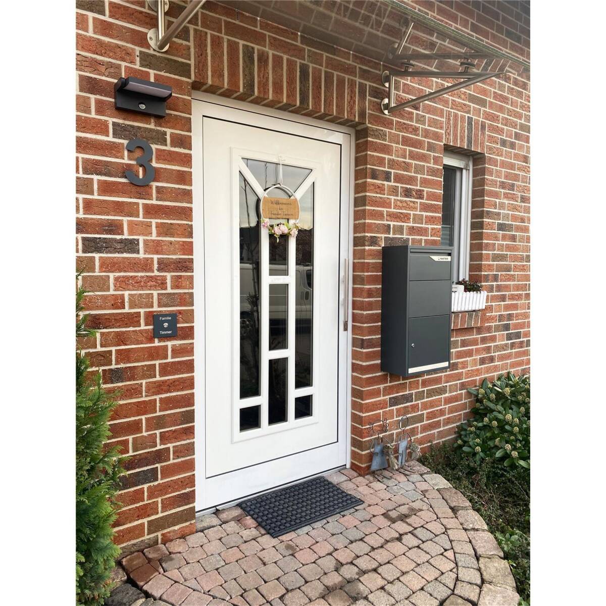 Dank des rostfreien Edelstahls V2A und der zusätzlichen Pulverbeschichtung in der Trendfarbe Anthrazit RAL 7016 ist Ihre Klingel absolut witterungsbeständig und sieht auch nach Jahren noch aus wie am ersten Tag. Durch die Verwendung einer massiven Edelstahlplatte fühlt sich die Türklingel wertig und schwer an.