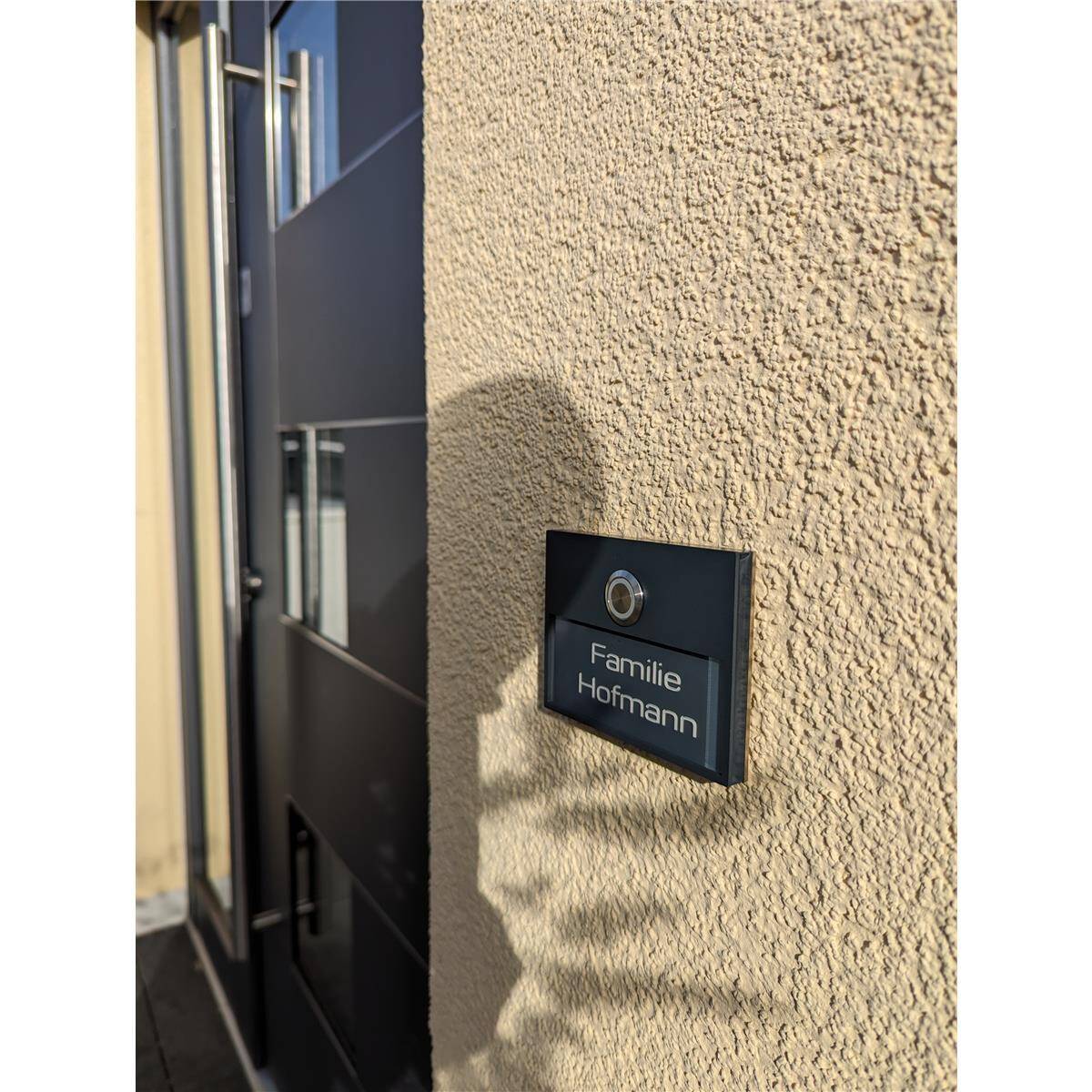 Das Klingelschild zeichnet sich durch seine hochwertige Verarbeitung und sein modernes Design aus und setzt so Ihren Eingangsbereich gekonnt in Szene.