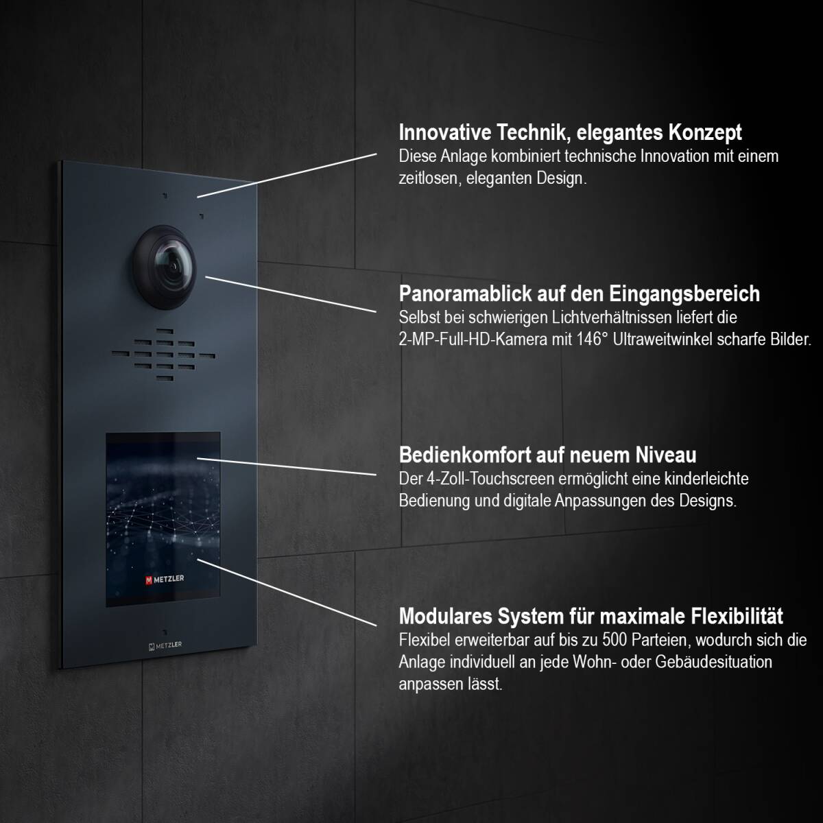 Die Metzler VDM10 Horizon ist dank des hochauflösenden 4\" IPS-Displays die ideale Sprechanlage für alle Gebäude von 1-500 Parteien.