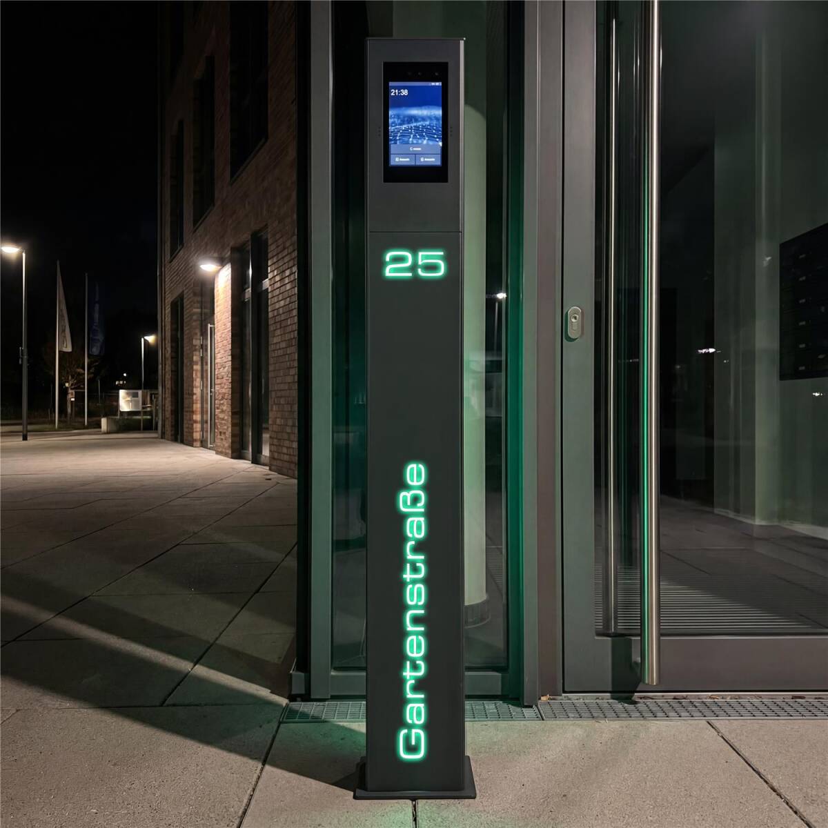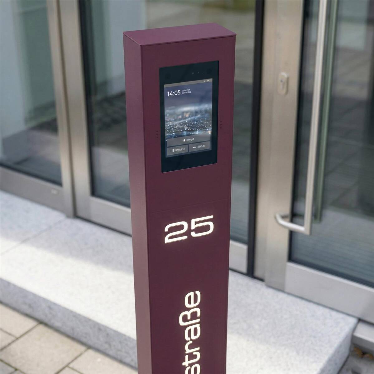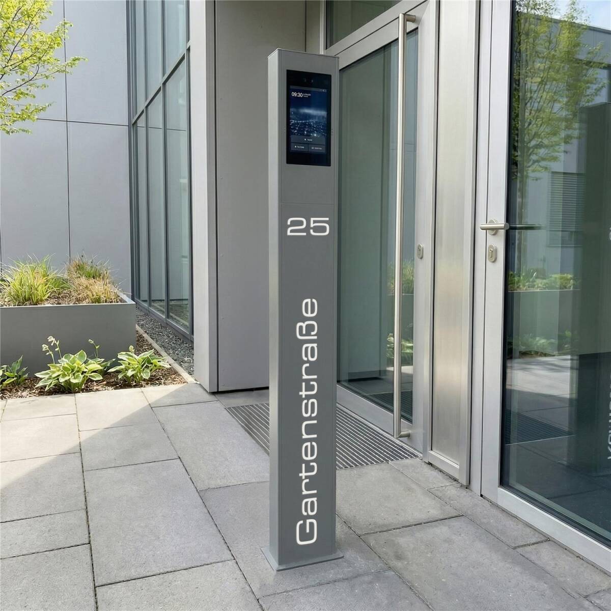- Flache Bauweise: Schlankes, nahtloses Design als freistehende Stele – flexibel aufstellbar ohne bauliche Anpassungen.