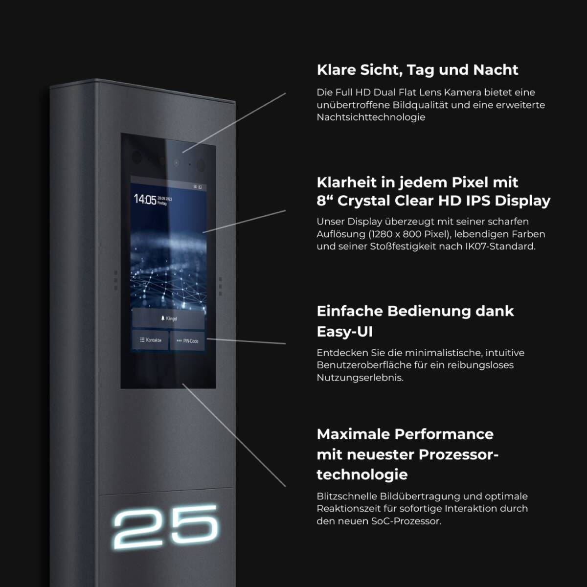 - Innenstation & App: Steuern Sie den Zugang bequem ĂĽber die Innenstation oder die kostenlose App, verfĂĽgbar im Play Store und Apple App Store.