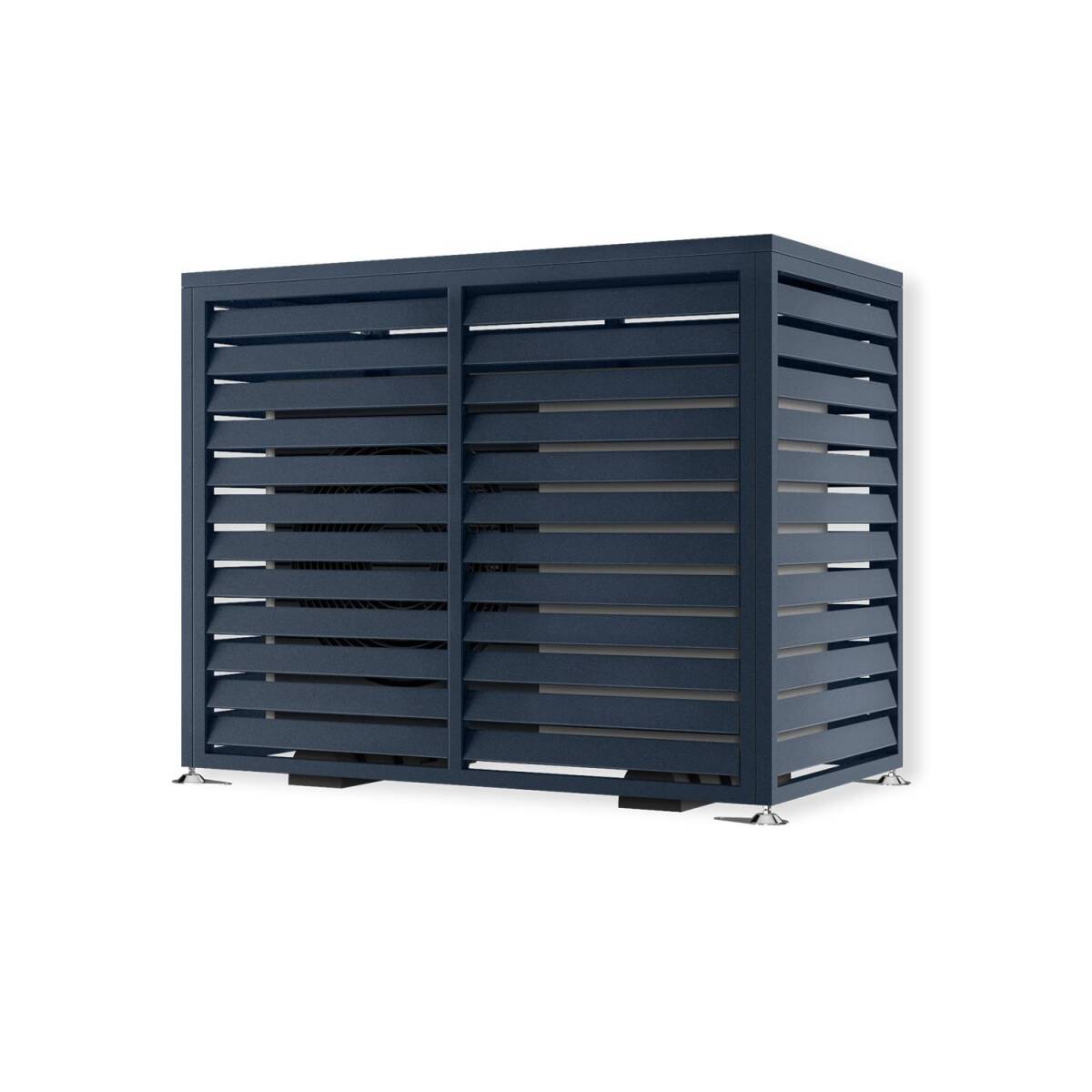 Die Abdeckung bietet die Möglichkeit einer vertikalen Montage von zwei Abdeckungen, sodass auch eine doppelte Wärmepumpe problemlos untergebracht werden kann. Die mitgelieferten verstellbaren Füße sorgen für eine einfache, stabile Befestigung, damit Sie die Abdeckung optimal an Ihre Installationsanforderungen anpassen können.