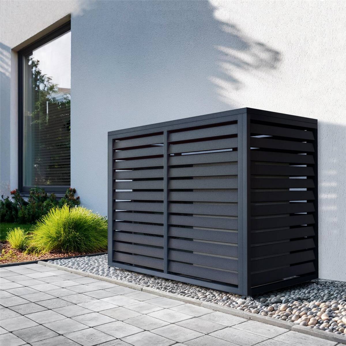 Metzler Wärmepumpenverkleidung aus pulverbeschichtetem Stahl in RAL 7016 Anthrazit