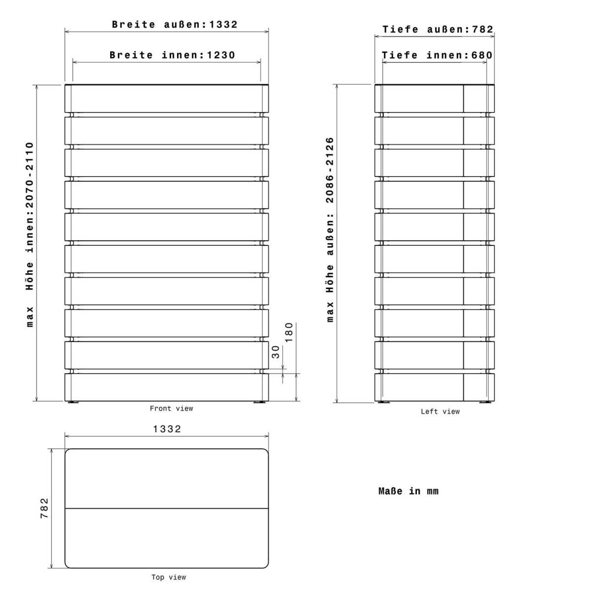 Außenmaße (B × H × T): 133,2 × 212,6 × 78,2 cm