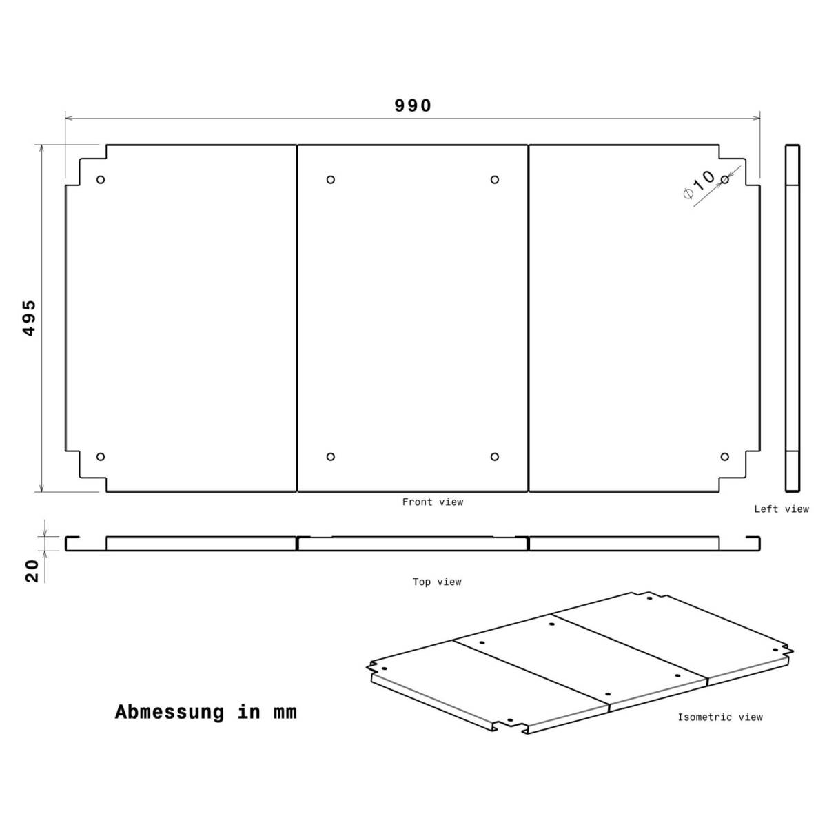 Breite × Höhe × Tiefe: 99,00 × 49,50 × 2,00 cm - Gewicht: 2,25 kg