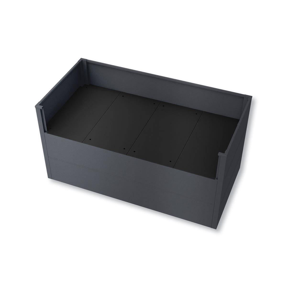 Gefertigt aus verzinktem Stahl und mit einer wetterfesten Pulverbeschichtung versehen, überzeugt der Zwischenboden durch Langlebigkeit und Widerstandsfähigkeit gegenüber Feuchtigkeit und Rost. Die stabile Konstruktion sorgt dafür, dass er auch unter hoher Last formstabil bleibt.