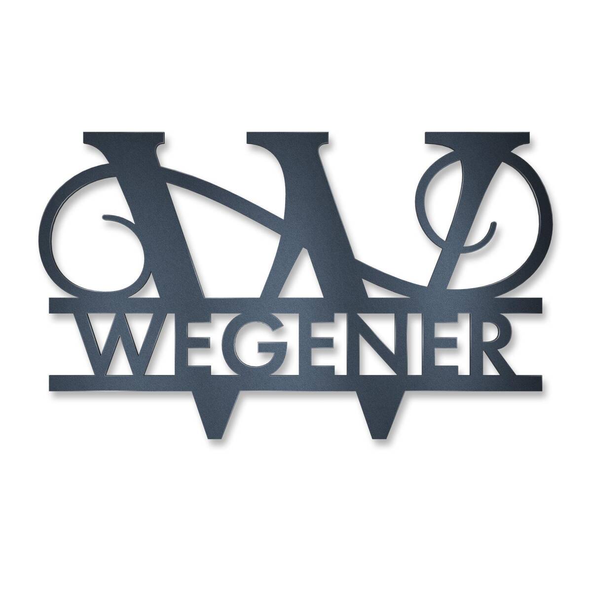 Ganz exklusiv können Sie nun Ihren Eingangsbereich mit diesem hochwertigen Namensschild verschönern. Metzlers neuestes Design besticht nicht nur durch sein edles Aussehen, sondern auch durch seine Hochwertigkeit. Der Schriftzug besteht aus Ihrem individuellen Namen; zudem wird der Anfangsbuchstabe Ihres Nachnamens als Monogramm hervorgehoben und durch eine Verzierung betont. Durch die 2 mm Stärke hebt sich das Schild besonders gut von der Fassade ab und ist auch von weitem deutlich erkennbar.