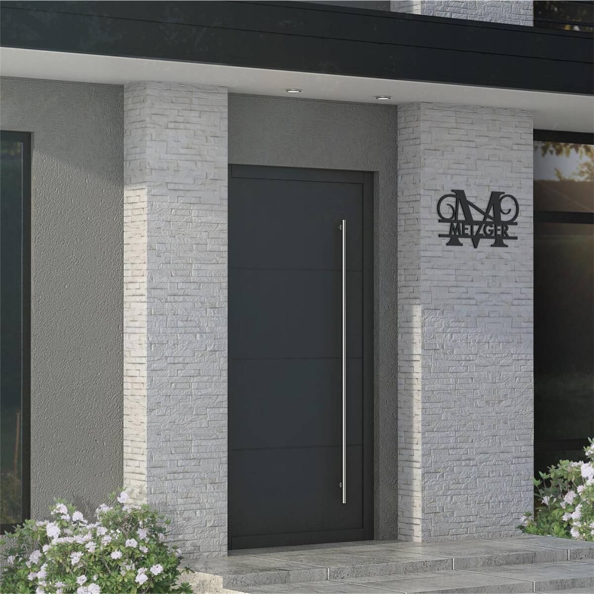 Das rostfreie Stahl wird durch die Pulverbeschichtung in der Trendfarbe Anthrazit verstärkt und sorgt so dafür, dass der Namenszug über Jahre hinweg Wind und Wetter trotzt und zudem äußerst pflegeleicht daherkommt.