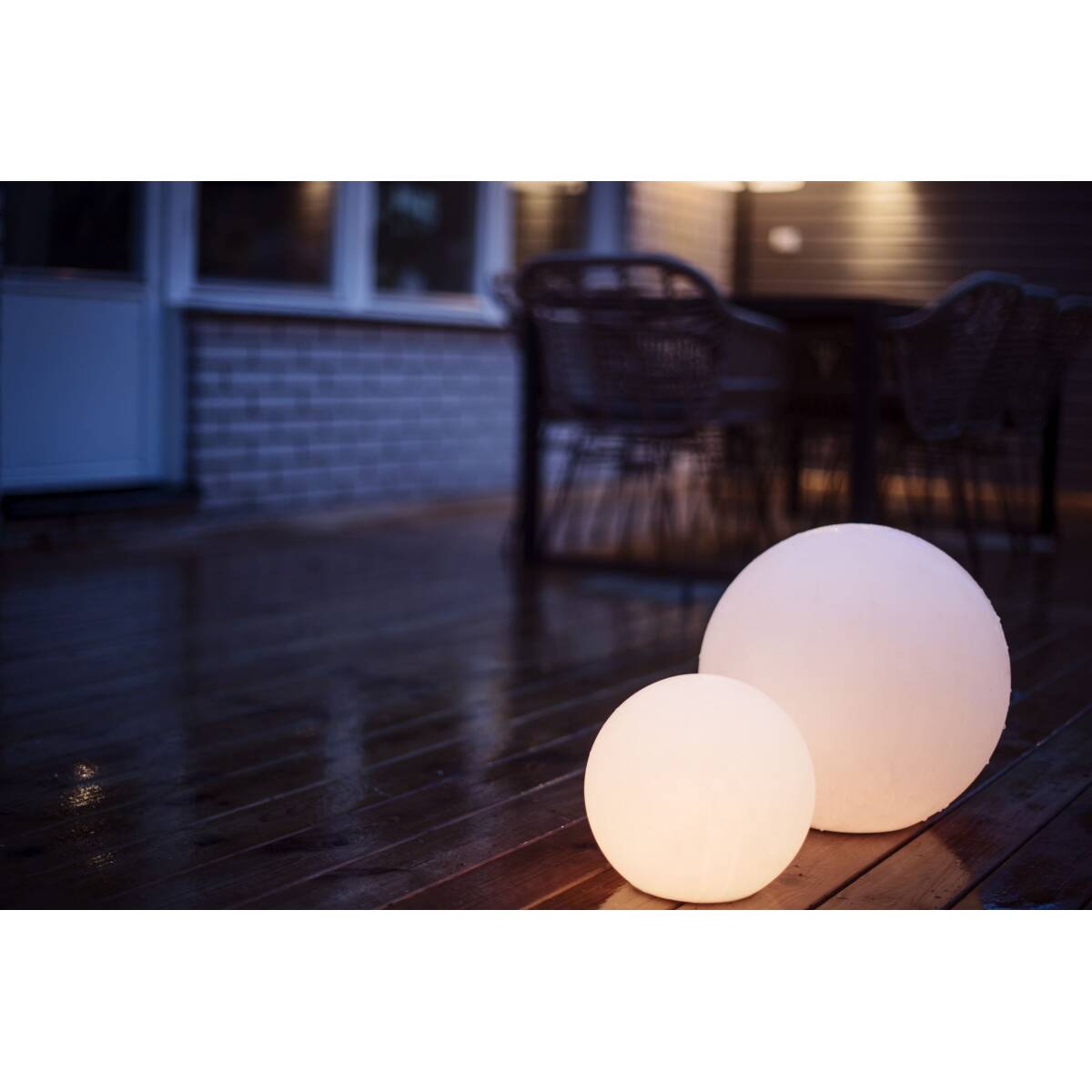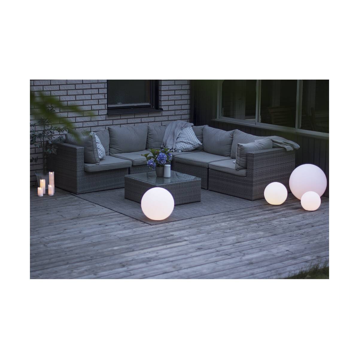 Die stilvolle Kugelleuchte eignet sich ideal für den Einsatz im Innen- und Außenbereich. Mit ihrer modernen LED-Technik sorgt sie für stimmungsvolle Lichtakzente – wahlweise mit sanftem Farbwechsel oder konstantem Licht in einer Farbe. Die Beleuchtung lässt sich komfortabel per Fernbedienung steuern. Für maximale Flexibilität kann die Leuchte entweder kabelgebunden betrieben oder dank integrierter, wiederaufladbarer Akkus kabellos genutzt werden. Beide Varianten sind im Lieferumfang enthalten. Mit bis zu 8 Stunden Leuchtdauer bei voller Akkuladung ist die Kugelleuchte perfekt für lange Abende im Garten oder auf der Terrasse geeignet. Zudem lässt sie sich hervorragend mit weiteren Größen der Twilight-Serie kombinieren, um individuelle Lichtinszenierungen zu schaffen.