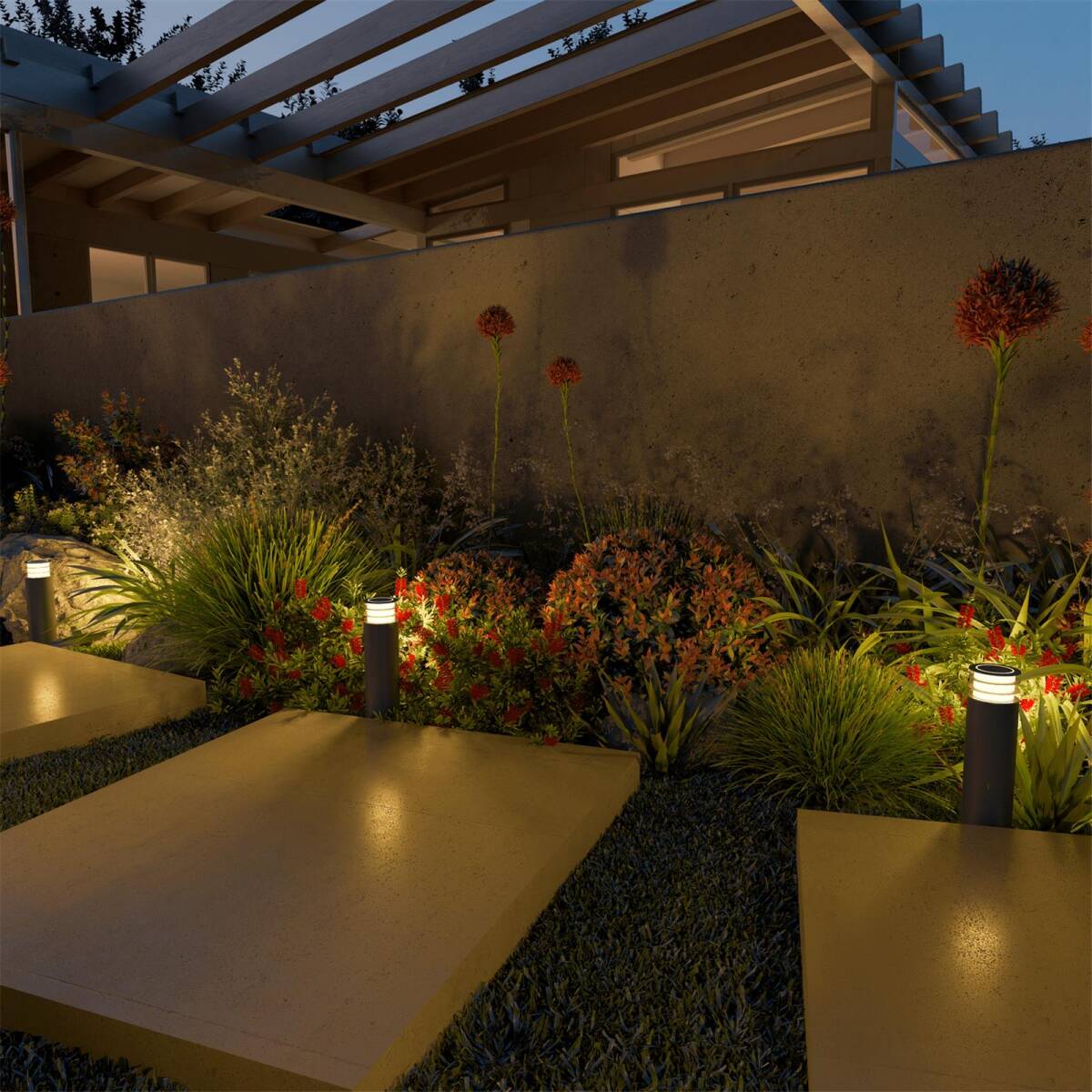 Dieses Set intelligenter 24V Gartenpfosten mit eingebauten LED-Lichtern verwandelt Ihren Garten in einen Ort, den Sie lieben werden. Beleuchten Sie Ihren Garten mit warmweißem Licht für lange (Sommer-)Abende oder wählen Sie aus über 100 Farboptionen, die Ihrer Stimmung entsprechen. Erleben Sie ein vollständig integriertes Smart-System auf Basis des Bluetooth-Mesh-Protokolls. Hinweis: Für dieses Produkt benötigen Sie den Calex Bluetooth Link. Diese Gartenpfosten haben einen Durchmesser von Ø76 mm, eine Tiefe von 76 mm und eine Höhe von 280 mm. Abstand zwischen den Lichtpunkten: 2 Meter. Kabellänge: 13 Meter (mit Stecker). Unabhängig von der Größe Ihres Gartens oder der Anzahl der platzierten Elemente können diese Produkte alle mit derselben kostenlosen Calex-App verbunden und verwaltet werden, die Sie bereits für die bestehenden Calex Smart-Produkte verwenden.