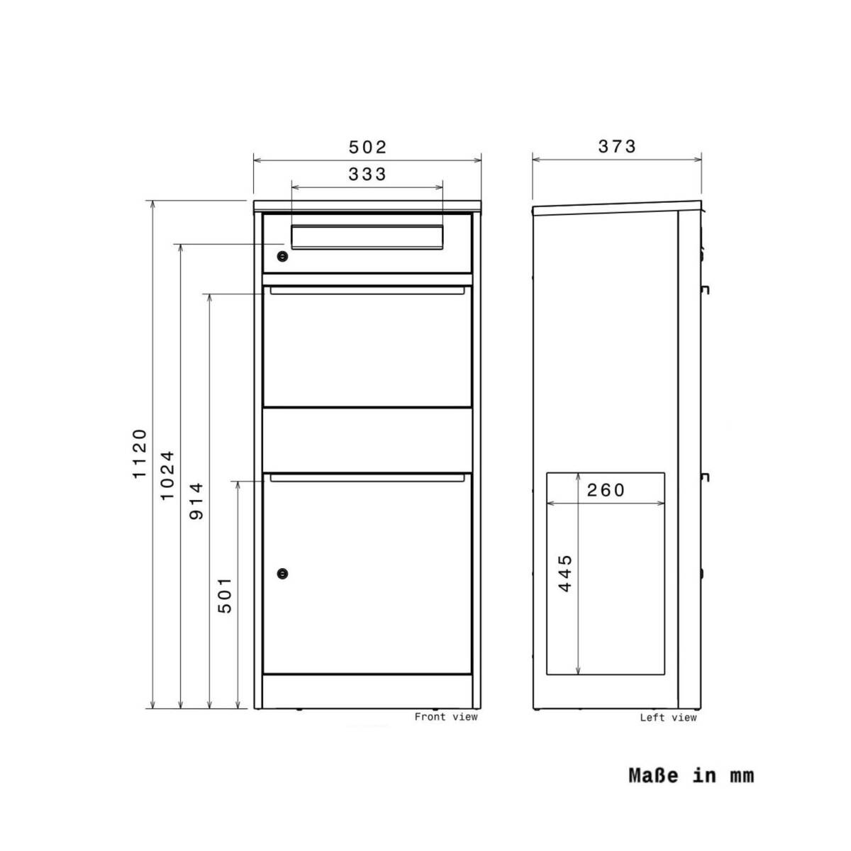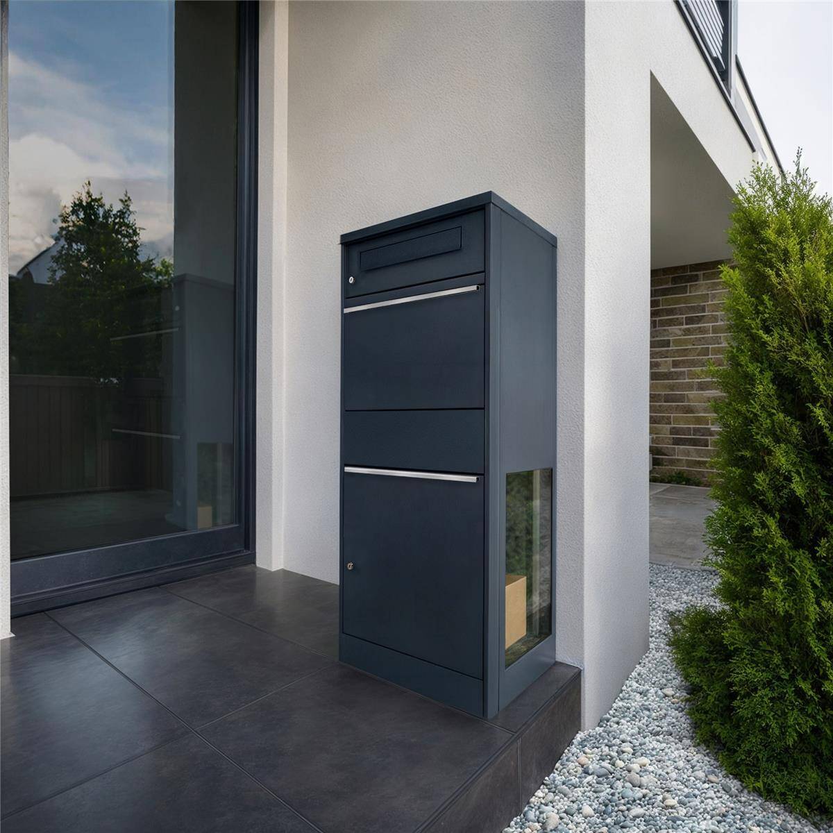 Metzler Briefkasten und Paketbox in Anthrazit mit beidseitigen Sichtfenstern